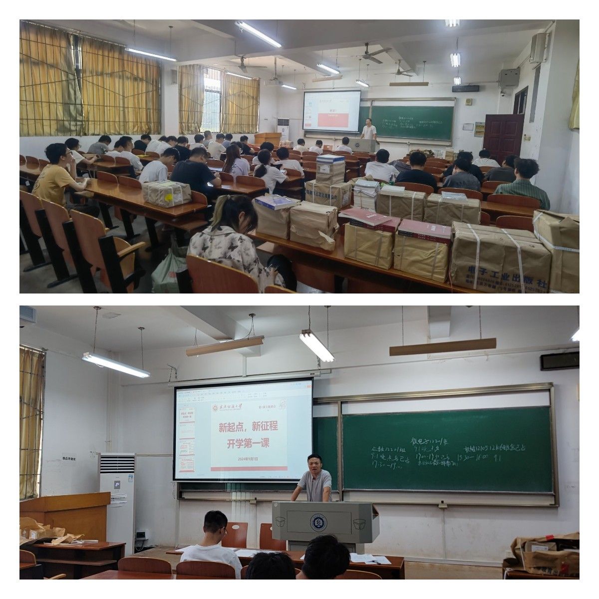 各班班主任为大家生动讲解了《新起点 新征程》开学第一课,引导同学们学习党的二十届三中全会精神,通过讲解与互动,让大家深刻领会会议的重要内涵,将会议精神落实到学习生活中,为国家发展贡献力量。同时,老师们还以“学习奥运精神,争做有为青年”为主题,带领大家回顾奥运精彩瞬间,感受运动员们拼搏进取、超越自我的精神,激励同学们在新学期以奥运精神为指引,勇敢追逐梦想。同时,老师们还特别强调了校园健康安全,详细讲解了校园肺结核防护攻略,包括传播途径、症状及防护措施等,帮助增强学生的自我防护意识与健康管理能力。最后,老师们倡导大家尽快调整自身状态,鼓励大家制定新学期学习计划,以积极的心态和良好的状态开启新气象。