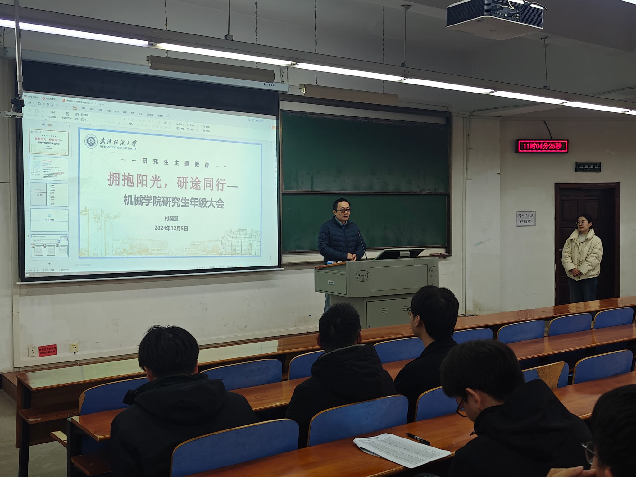 2024年12月5日,williamhill英国中文在03-T102召开“拥抱阳光,研途同行”主题研究生年级大会。