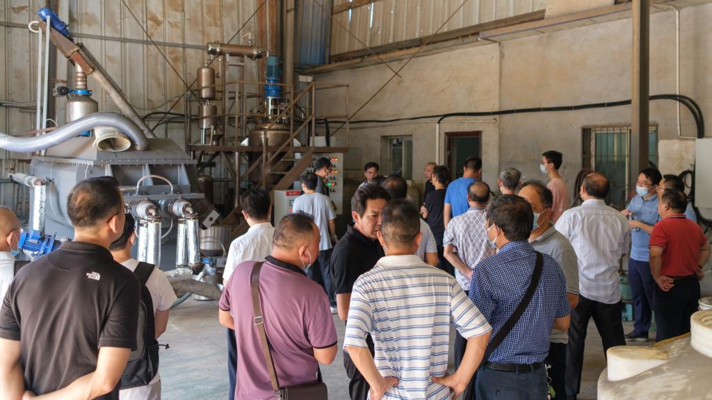 来宾们首先参观了中试基地,对于该固废的无毒化、资源化技术原理以及实施线路进行了实地考察;研发团队现场展示了有机硅渣的无毒化、资源化生产运行流程,以及资源化产品演示工作。考察期间,项目团队和来宾积极互动,有问有答,气氛活跃。
