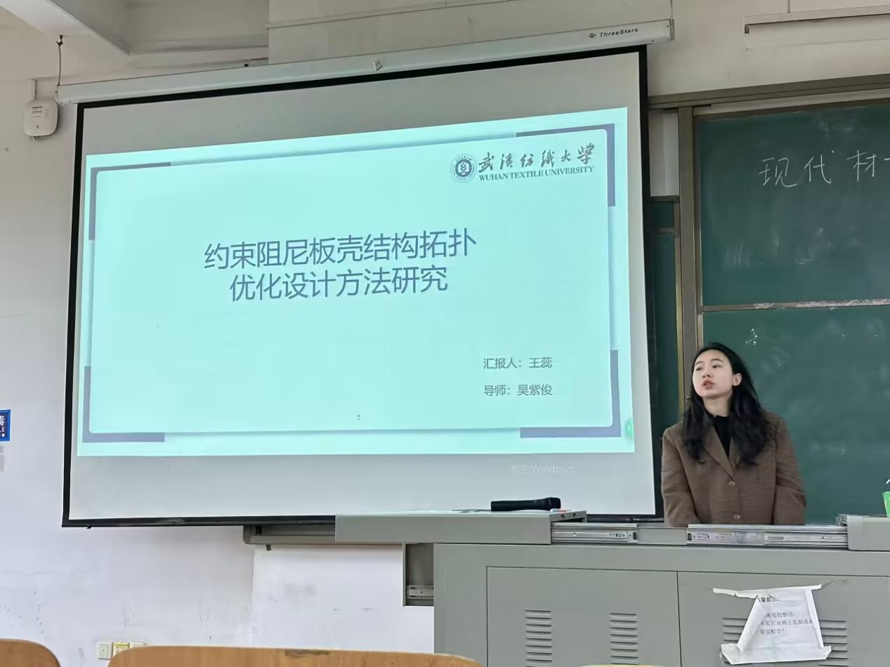 王蕊同学的研究内容是“约束阻尼板壳结构的拓扑优化设计方法研究”。徐巧老师针对对柯滨滨同学的分享分享给出了建议,一是充分利用多种调度算法和优化方法,对嵌入式系统的性能进行了全面的分析和评估,提出了具有实际应用价值的方案;二是该论文中存在一些表述不够清晰的问题,需要进一步完善语言表达和逻辑思维能力,在日后的研究中注重实践应用,加强与实际场景的结合。