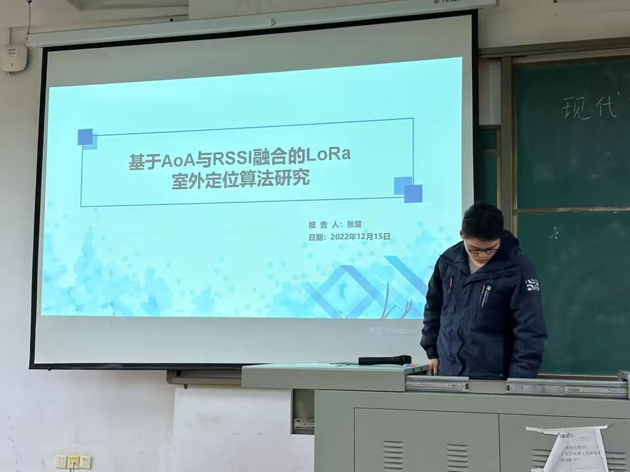 张楚同学的研究内容是“基于AOA与RSSI融合的ORA室外定位算法研究”。徐巧老师针对张楚同学的分享给出了建议,一是其汇报中存在一些理论和实践之间的不够贯通,需要进一步完善研究设计和实验方案;二是在以后的研究中要注重跨学科的合作与交流,拓宽研究视野。