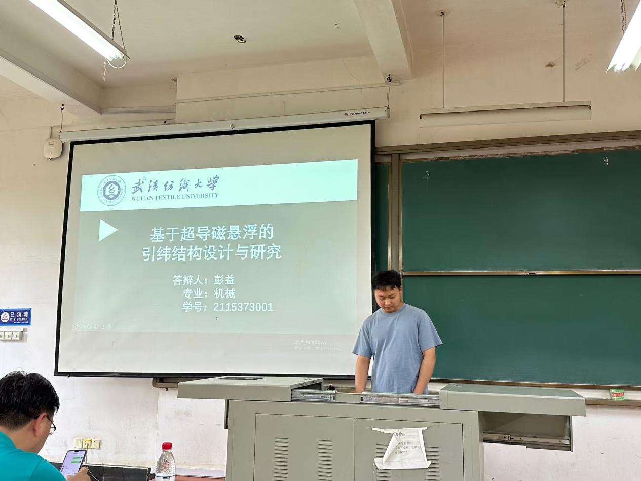 彭益同学介绍了他的研究课题“基于超导磁悬浮引纬的片梭织机结构设计”。他详细介绍了在纺织机器中利用超导磁悬浮技术实现引纬的原理和结构设计,展示了他在该领域的研究成果和创新点。张成俊教授就仿真分析模块与彭同学展开激烈探讨,针对彭益同学的分享给出了建议:1.要明确自己的课题下一步要做什么,要结合实际。题目不要太大,要让观众一眼看出研究的课题;2.提出“讲解清晰,目标明确”是论坛演讲的最基本要求,在这方面要多注意。