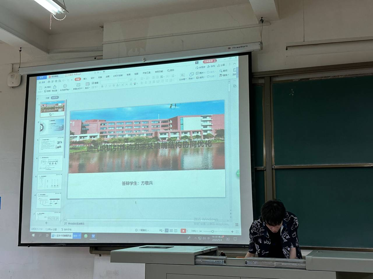 方敬兵同学介绍了他的研究课题“喷气织机引纬动力学及喷嘴结构协同优化”。他详细介绍了喷气织机中引纬过程的动力学特性以及喷嘴结构与引纬性能之间的协同优化关系。他的研究成果对提高喷气织机的生产效率和织物质量具有重要意义。张成俊教授对方敬兵同学的分享给出了建议:1.研究目标要明确,仿真做得要明确,不能糊弄过去就完事了;2.PPT要进一步优化。