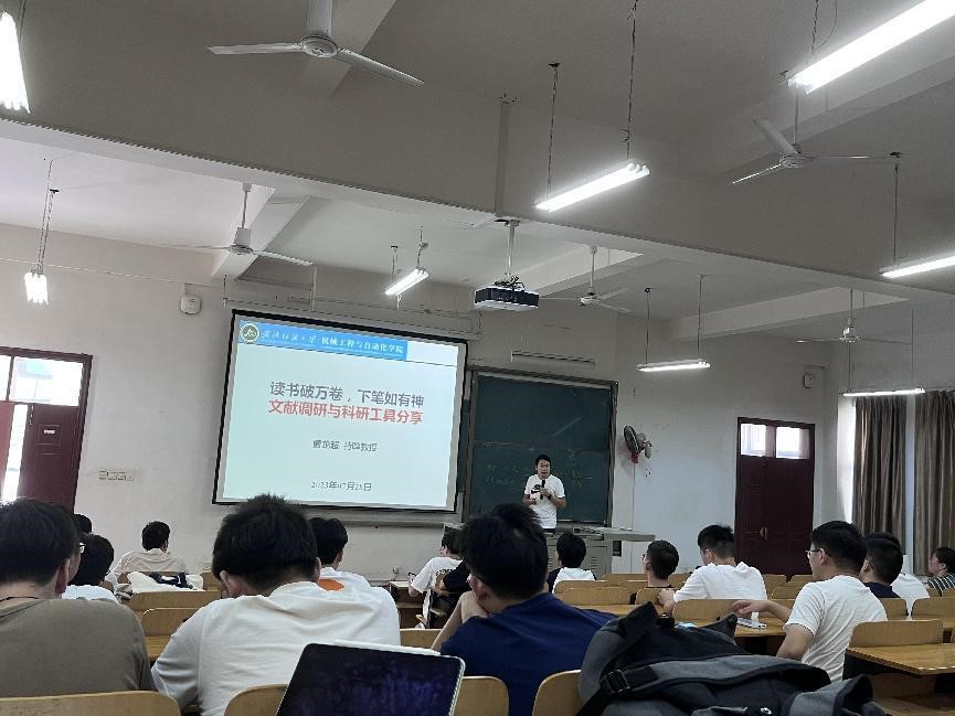 曹龙超老师以《读书破万卷,下笔如有神--文献调研与科研工具分享》为主题进行汇报。主要向我们分享了他的文献调研经验,从学术文献出发,针对不同学术文献有着不同的重点,我们要从中选取适合自己方向的文献进行阅读;不同的学术文献要掌握不同的阅读技巧,合理利用文章的引言摘要部分能够让我们事半功倍地阅读文献;合理分配科研时间也能帮助我们更好地完成科研工作,并且为我们讲解了许多科研工具的使用技巧,帮助我们更好地利用它们去学习。