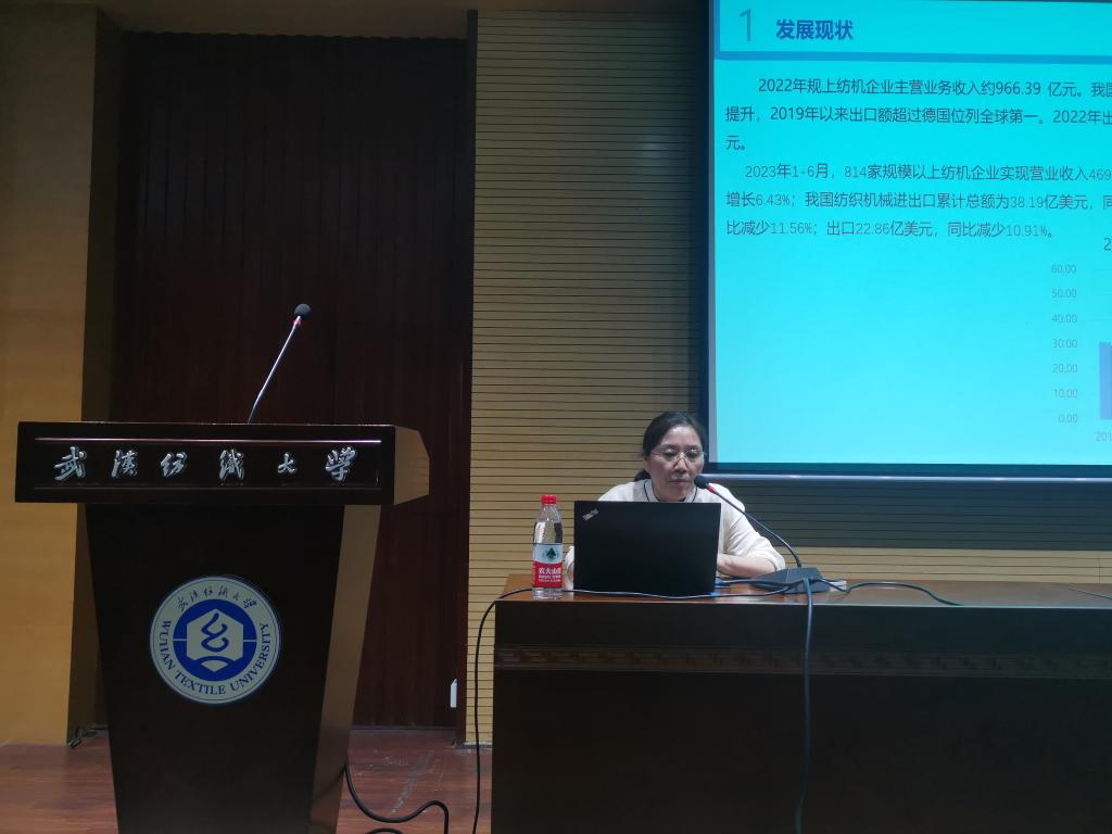 梅宝龙工程师做了题为《织造机械行业技术发展情况》的学术报告。报告首先详细介绍了行业现状,包括刀具夹具、生产线、装配线以及各类织机和提花机;其次,全面展示了专利和展品,分析了织造机械的未来发展趋势——高效率、高精度、高质量、高效益;然后讲解了科技指导计划和科技鉴定情况;最后,深刻剖析了织造机械“十四五”中期评估情况。