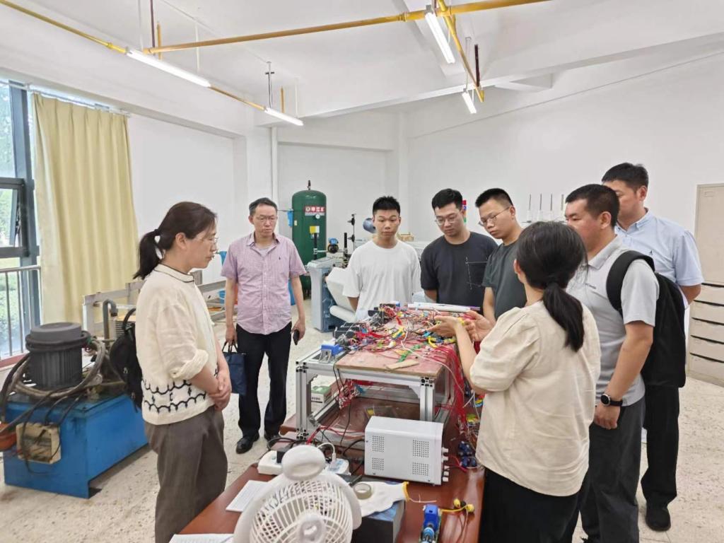会后,中国纺织机械协会总工程师李雪清和工程师梅宝龙参观了我校的湖北省数字化纺织装备重点实验室,学院梅顺齐教授、徐巧博士、林富生教授向中国纺机协会领导汇报了我校近年来在纺织装备的研究进展,中国纺机协会领导对学院的研究方向及成果给予了高度的评价,并鼓励学院教师按照现有的研究方向努力奋斗,为中国纺织机械进步贡献纺大智慧。