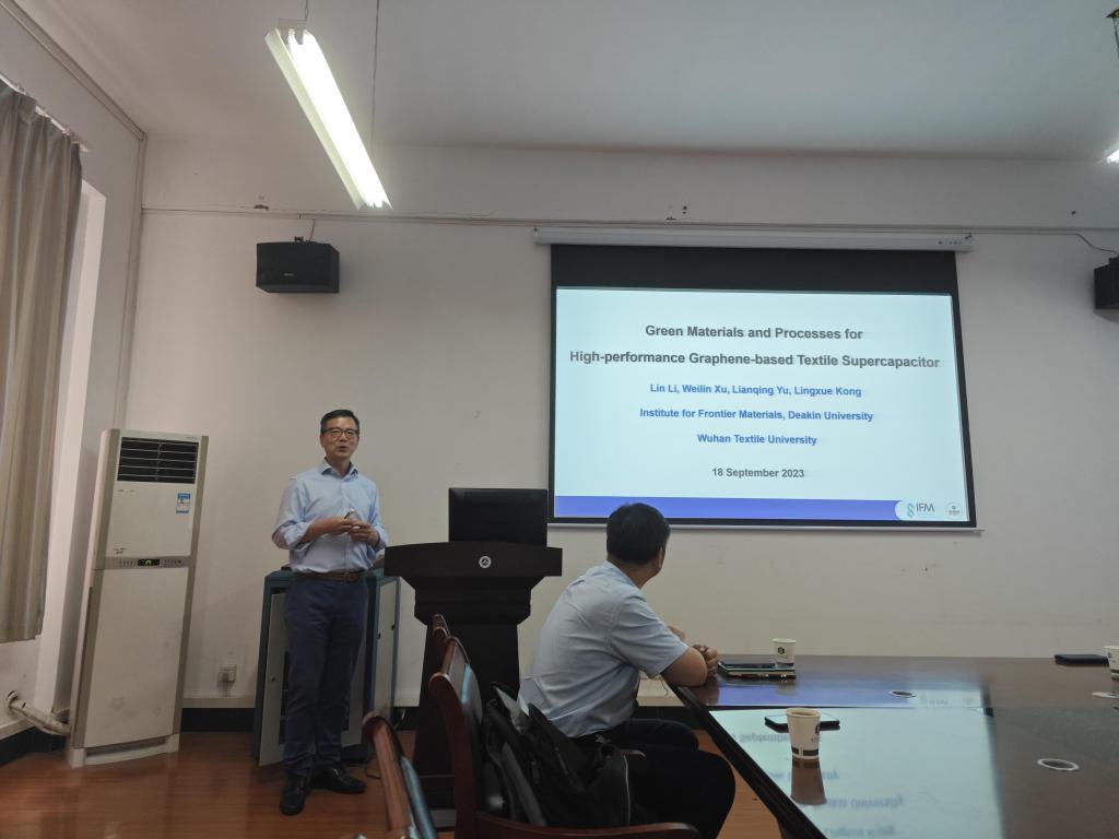 2023年9月18日下午,应我院邀请,澳大利亚迪肯大学孔令学教授为我院师生做题为《可穿戴电力产生与储存技术》的学术报告,报告介绍了可用于产能、储能的新型纺织纤维材料设计制备方法,及其相关最新研究成果。本次学术报告由学院院长余联庆教授主持,学院党委书记干文勋、副院长张成俊教授、相关专业老师和研究生参加了本次报告。