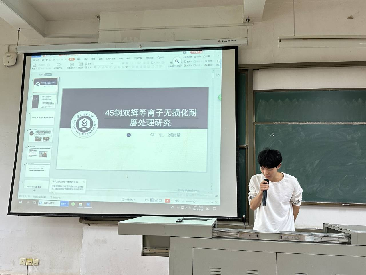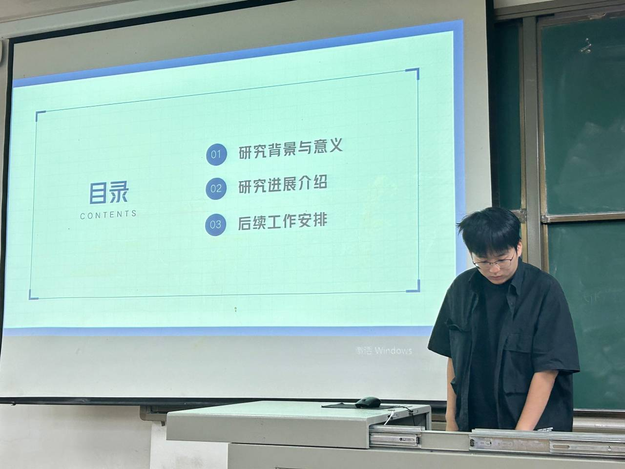 万济滔同学介绍了他的研究课题“基于离心纺的纤维基导电薄膜的制备方法与性能研究”。万济滔同学的研究关注了导电材料的制备方法,具有广泛的电子和材料科学应用。高老师提出“研究中使用的导电薄膜在哪些应用中具有潜在的优势?是否考虑了不同离心纺条件下的材料性能?”鼓励万同学继续优化制备方法,以实现更好的性能,并探索更多的应用领域。