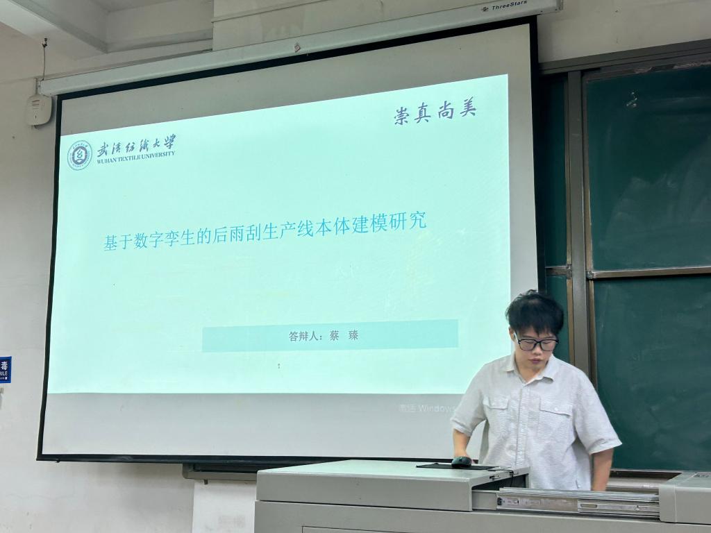 蔡臻同学的研究课题“基于数字孪生的后雨刮生产线本体建模研究”。蔡臻同学的研究关注数字制造和生产线的建模,对于工业自动化和效率提升具有实际价值。高老师提出“数字孪生模型在生产线优化中有哪些关键应用?是否已经在实际生产中测试了该模型的性能?”并建议蔡同学进一步深入研究数字孪生模型的应用,以验证其可行性,并考虑不同工业生产线的实际应用。