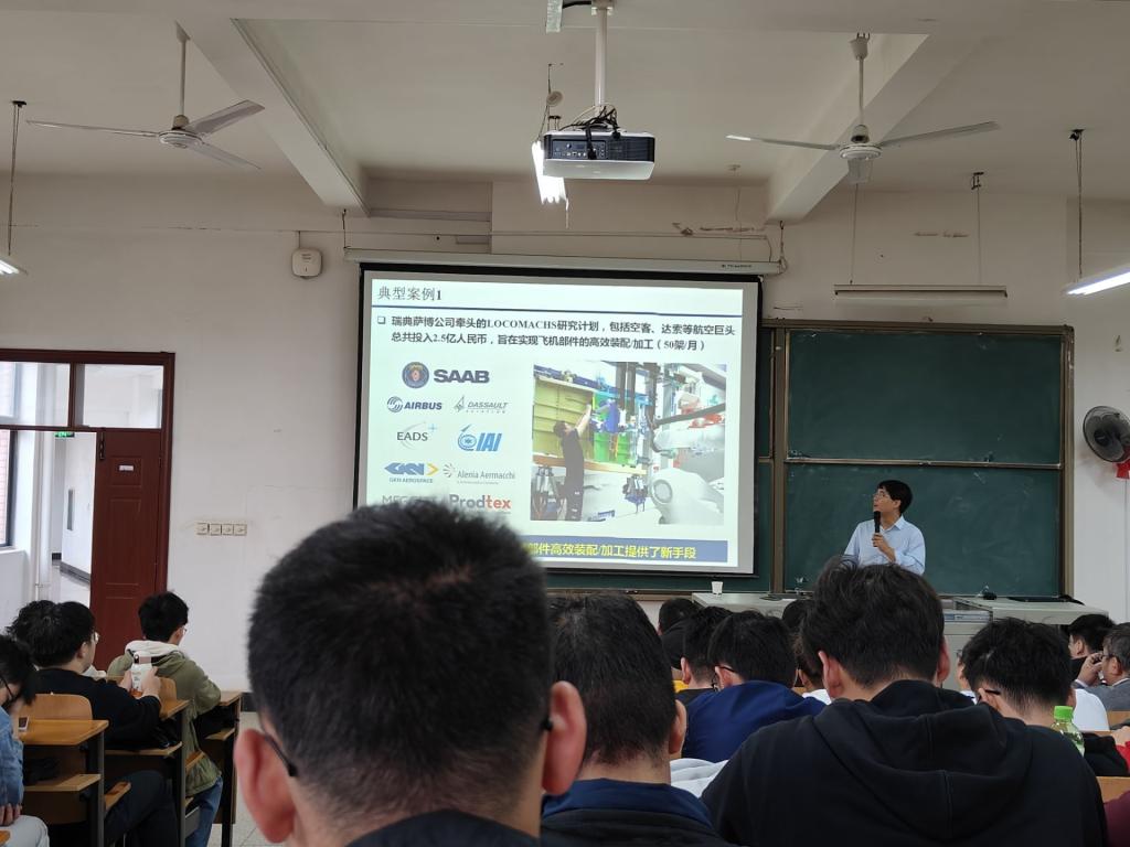 他指出机器人检测/加工为大型复杂构件制造提供了新的思路,讲述了机器人检测/加工的技术优势,但同时也面临着巨大的挑战,例如加工系统坐标系繁多导致精确标定难,三维测量数据存在固有缺陷,测点离散与缺陷导致光顺加工路径生成难等,同时也指出机器人应用的领域也很广阔,例如航空航天、汽车等领域。