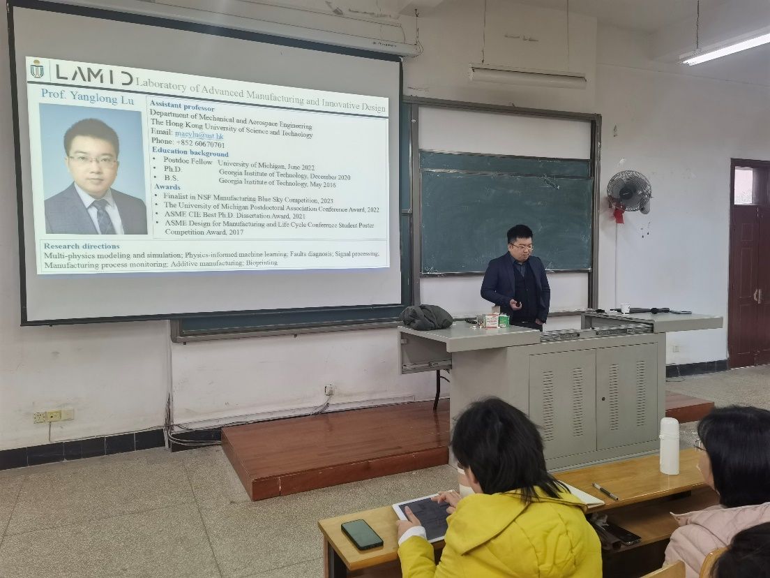 2024年1月15日下午15:00,应我院曹龙超特聘教授邀请,香港科技大学的陆杨龙教授在阳光校区8D201为williamhill英国中文师生做了一场精彩生动的学术报告。报告题目为“物理信息机器学习及其在先进制造中的应用(Physics-Informed machine learning in advanced manufacturing)”,学院院长余联庆教授以及近100名师生代表出席了本次学术报告。
