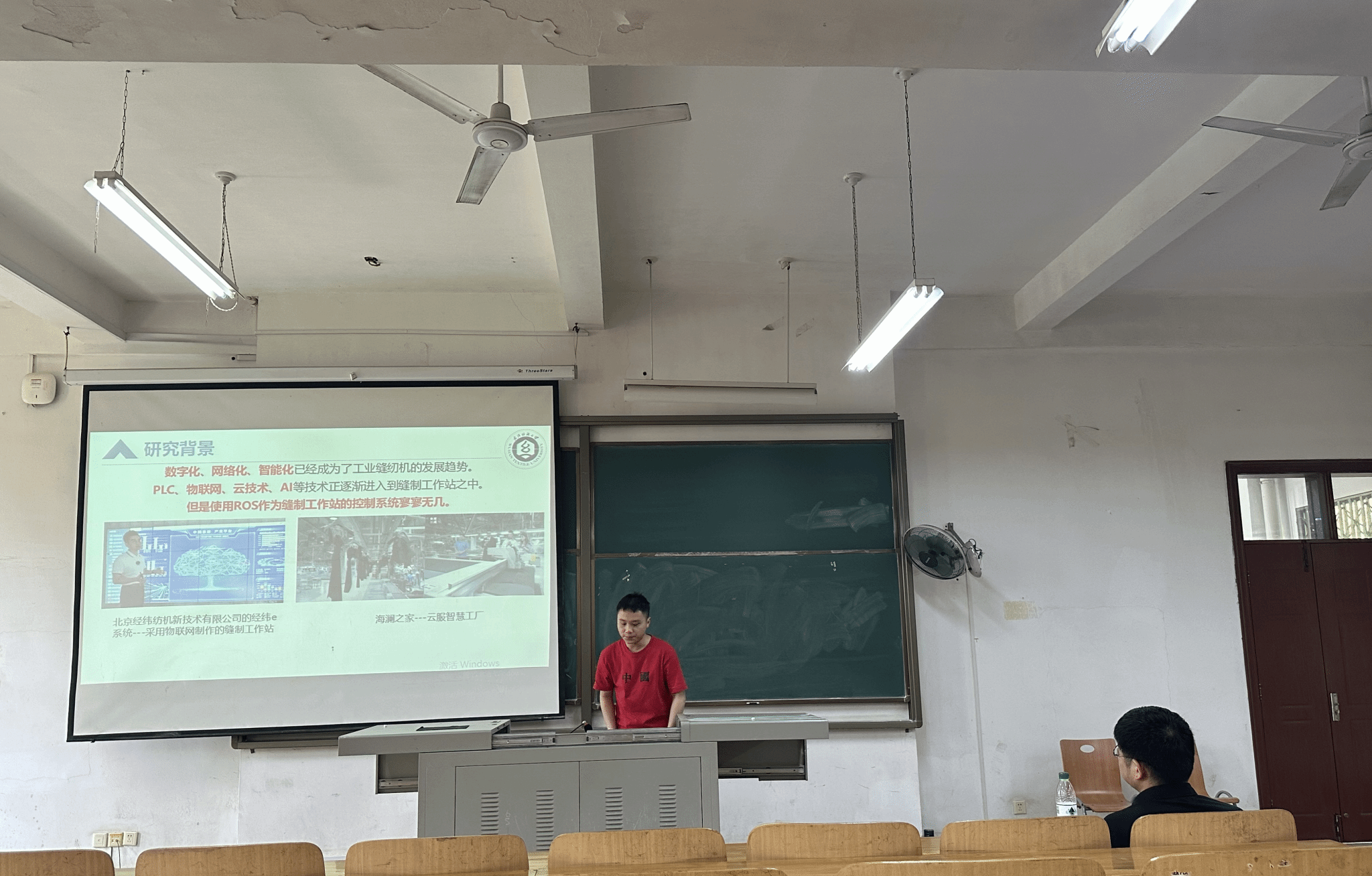 韦远鹏同学汇报的《基于ROS的缝制工作站控制系统研究》课题,在这个信息化,网络化的时代,发现用ROS作为缝制工作站控制系统的研究少之又少,因此选用此标题作为研究课题进行研究,从而实现对缝制工作站的全面控制。
