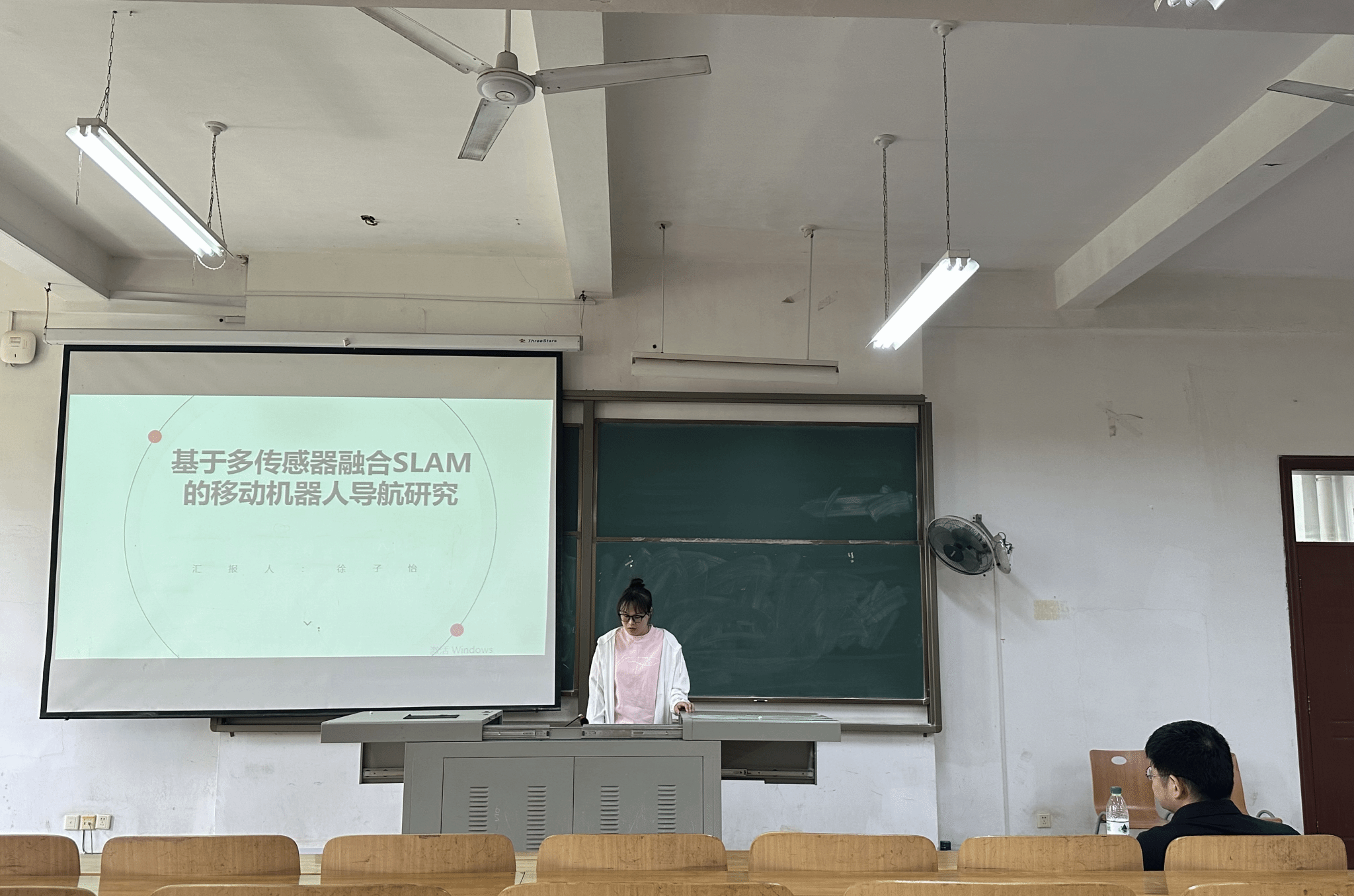 徐子怡同学汇报的《基于多传感器融合SLAM的移动机器人导航研究》课题,比较了多种算法,选用了最为合适的SLAM算法作为主要算法,此算法在实际应用中表现很好。
