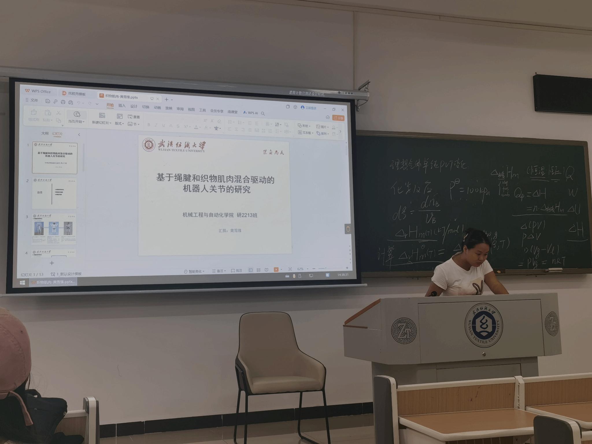 黄雪缘同学分享了她的研究课题“基于绳腱和织物肌肉混合驱动的机器人关节研究”,其研究的技术路线主要分为RSFM设计阶段、运动控制设计阶段、测试阶段等三个阶段。