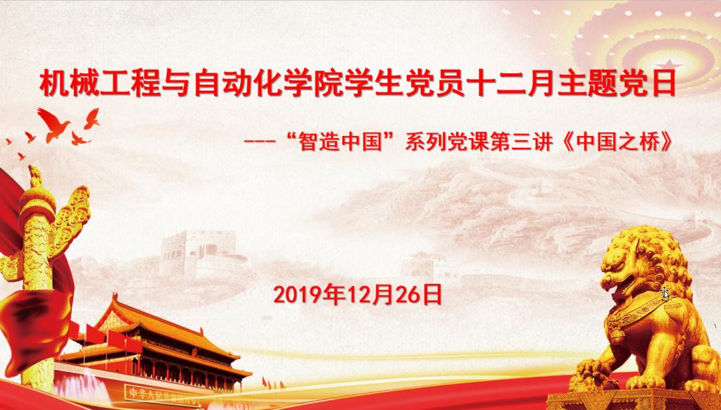 1226日,williamhill英国中文学生讲党课智造中国系列讲在8D201阶梯教室举行williamhill英国中文党委书记肖信华、副书记刘韦及各年级辅导员老师参加了本次活动。本次主题党课以中国桥梁为主题来自机械学生第二党支部的三位主讲人声情并茂地讲述了精彩的微党课,引发同学们阵阵掌声