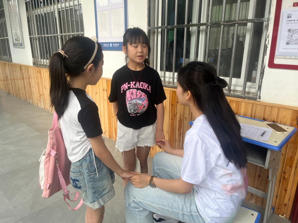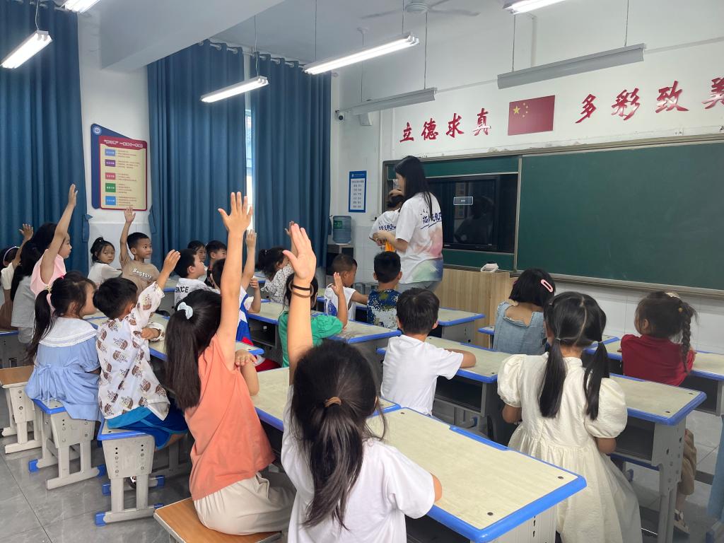 为了给孩子们第一天托管生活留下良好的第一印象,支教队员们用爱心和耐心为小朋友们准备了各种小活动和教学内容:罗雅妮用小游戏迅速拉近和孩子们之间的距离;何佳瑶拉住想回家的孩子耐心劝导;夏勇注意到班上有一个小儿麻痹症的同学,全程牵着他的手进出教室;何欣阳给同学们展示在云南旅行照片,课下同学们纷纷围住他想要知道更多云南故事;蔡畅的语文课从炎帝和黄帝的传说故事讲起,并特别在课堂结尾用一个小魔术帮同学们把学习生活的烦恼变成小纸屑吹走,让孩子们既惊奇又快乐。