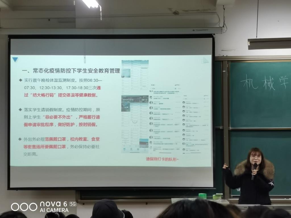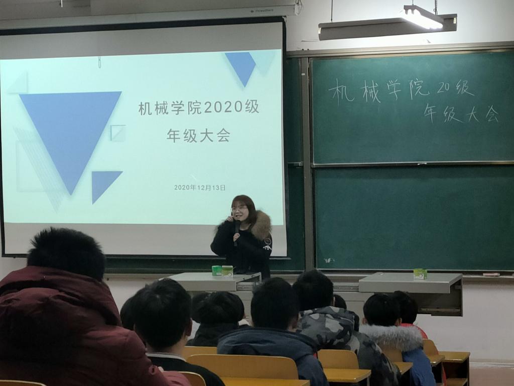 12月13日,机械学院20级举行年级大会,全体20级同学分两批次参加会议。辅导员肖锦老师主持会议。