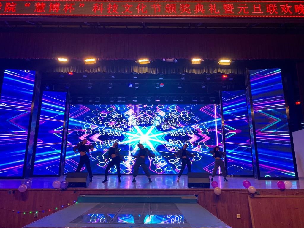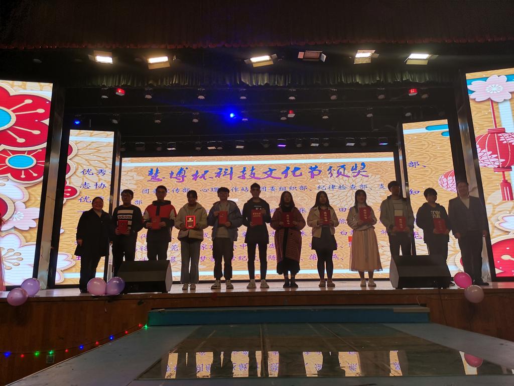 晚会现场,激情的演唱、火热的舞蹈、风趣的小品、精彩的乐器演奏等各类节目轮番上映,精彩纷呈,处处洋溢着青春活力。现场观众的掌声、欢呼声、尖叫声将晚会一次又一次推向高潮。表演穿插互动抽奖环节,同学们积极参与,幕布上的弹幕更是晚会的一大风景。在颁奖环节,学院领导为本次科技文化节获奖学生代表颁奖。最后由学生会各部门部长带来的的T台走秀表演为本次活动画下句号。