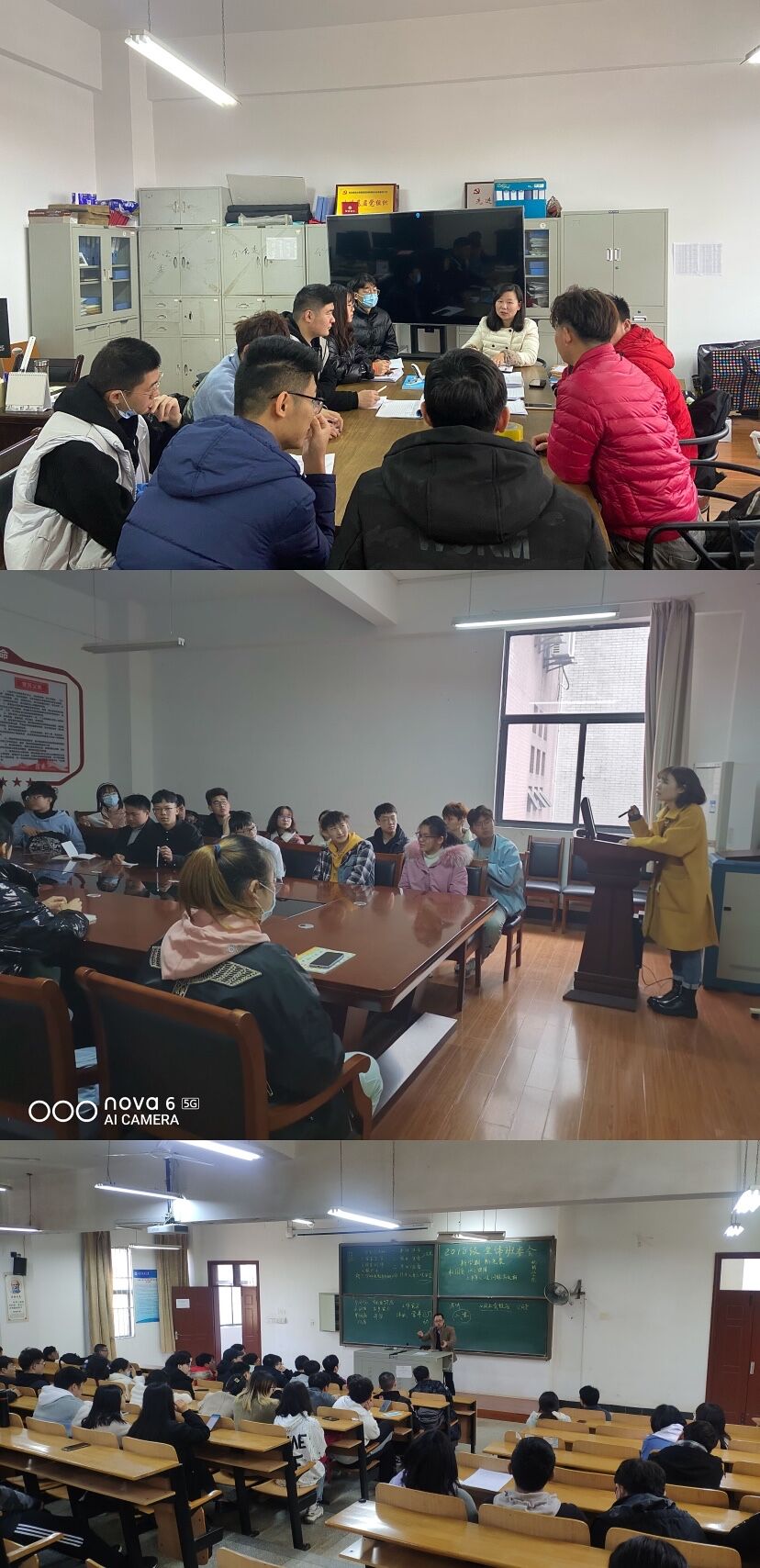 会上,梁祥云老师、王娟老师与肖锦老师分别对同学们的归校表示欢迎,并对新学期日报平安打卡工作、征兵动员工作、日常管理、学风建设、寒假社会实践报告收集、第二课堂使用情况通报、家长反馈信息采集、安全责任告知书签收等工作进行了安排与部署。
