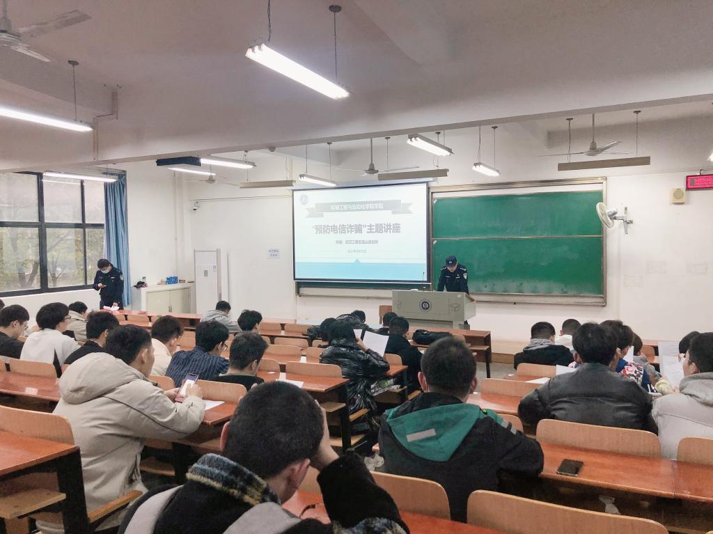 李所长及同行警官为学院师生送来的防范诈防骗宣传讲座生动活泼,以真实案例和数据剖析讲解,“有图有真相”,深入浅出地道出当前大学生面临的网络诈骗严峻形势及花样繁多的诈骗手法,并总结出几类常见的诈骗犯罪形式及防范措施,,具有深刻启示和防范宣传效果。生动的讲解深深吸引了在场师生,同学们不时报以热烈地掌声。