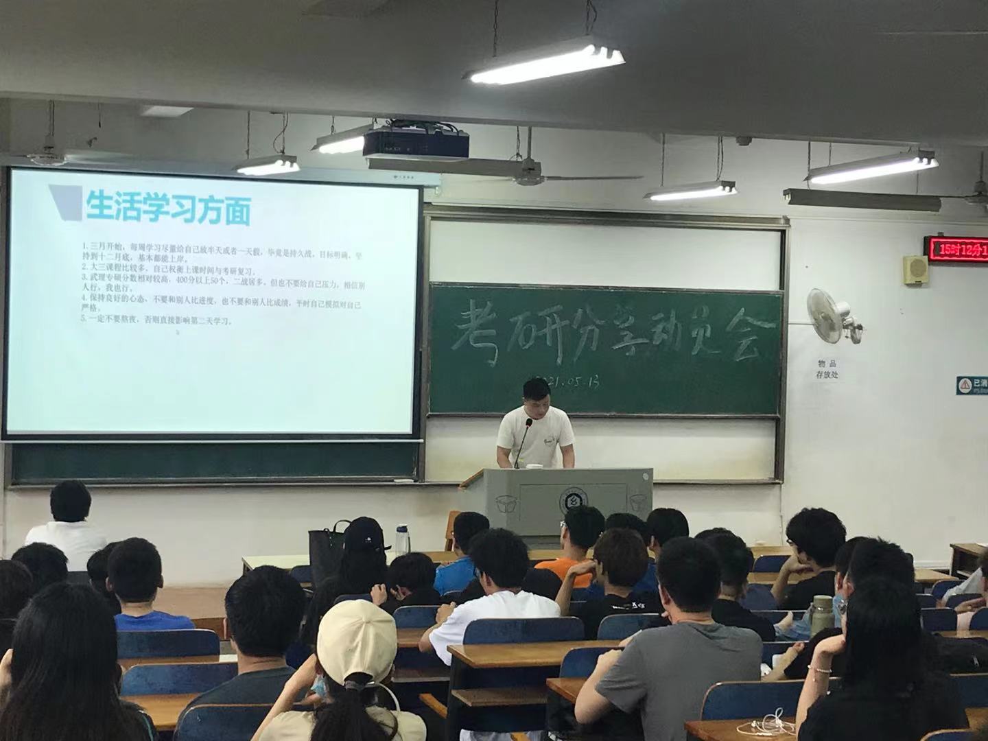 来自机械11706班,成功上岸武汉理工大学的杨光远学长根据自己的考试成绩,分析近几年武汉理工大学的考研招生情况给与同学们正确的选择学校的经验;来自工设11701班,考上西安工程大学的山水学姐为分享了调剂的经验;来自机械11708班的余慧文讲述了对择校的经验;来自工业工程11702班的徐铃青同学重点讲述了复试 ,专业等方面的问题。同学们边听学长讲解边记录,都表示这次交流让自己进一步明确了努力的路径。