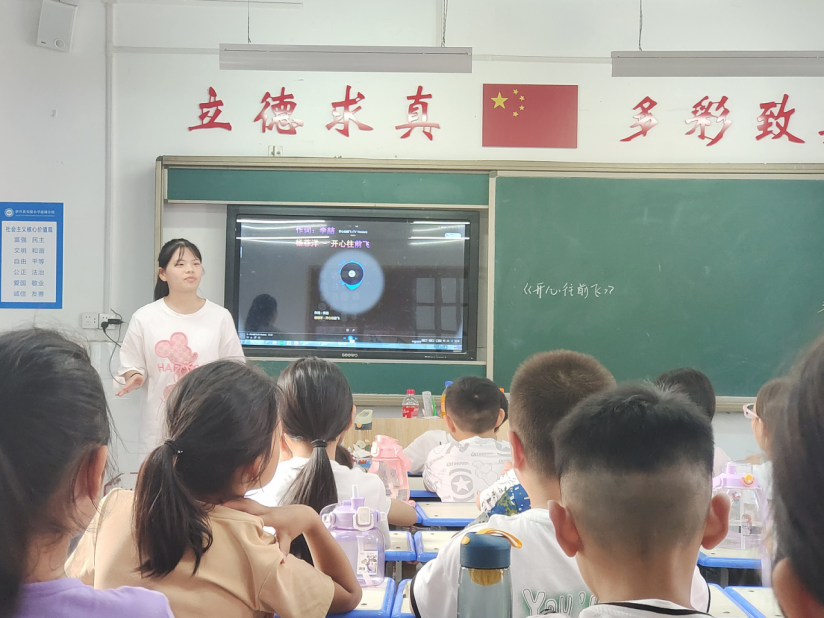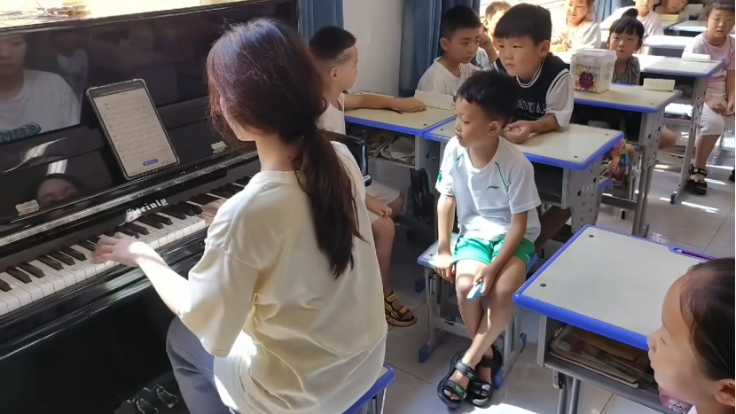 音乐课可以帮助智力的开发,增强心灵的感应,陶冶情操,培养良好的道德品质。支教老师郑冰琦、黄薇洋为小朋友带来有趣的音乐课程,深受同学们欢迎。