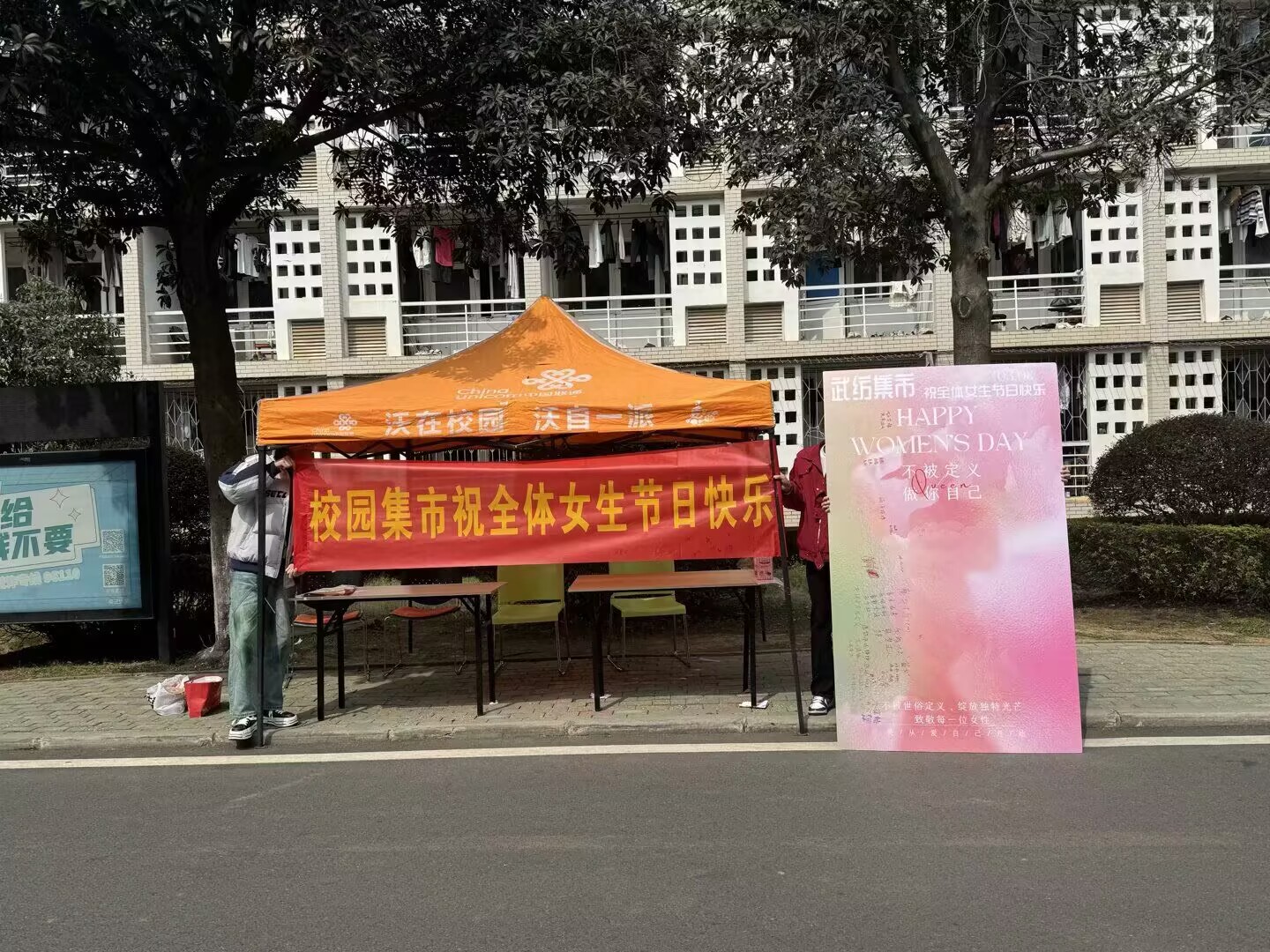 在国际劳动妇女节之际,williamhill英国中文开展“爱自己 做不被定义的自己”主题活动,校园集市赞助活动了KT板与横幅,共同祝福纺大全体女生节日快乐。