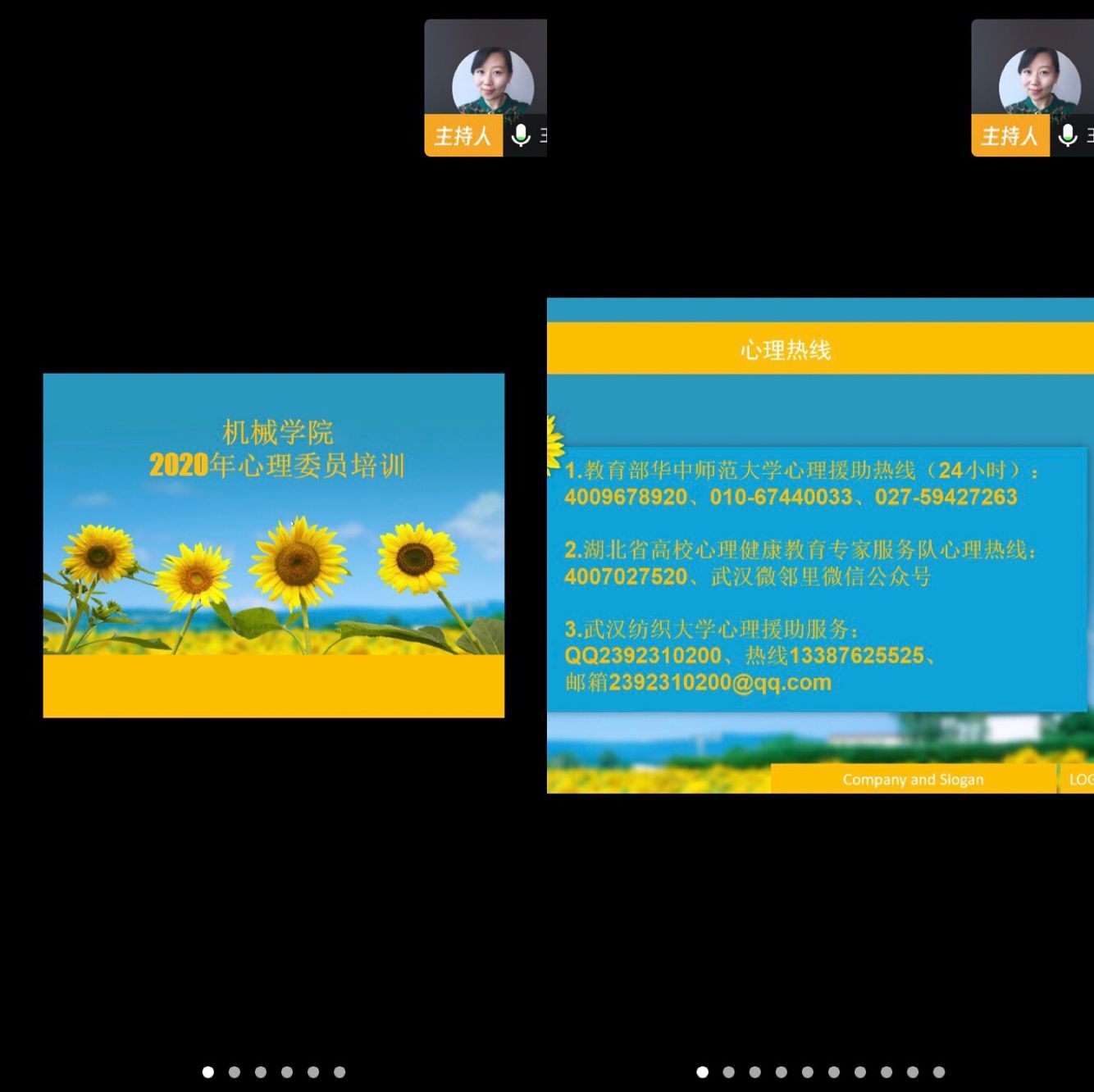 4月9日下午,williamhill英国中文向日葵心理工作站开展“抗疫暖心”心理委员培训专题会,心理工作站指导老师王娟做《疫情期间的心理调试方案》报告,williamhill英国中文心理工作者全体成员和全院各年级心理委员在线参加培训会。
