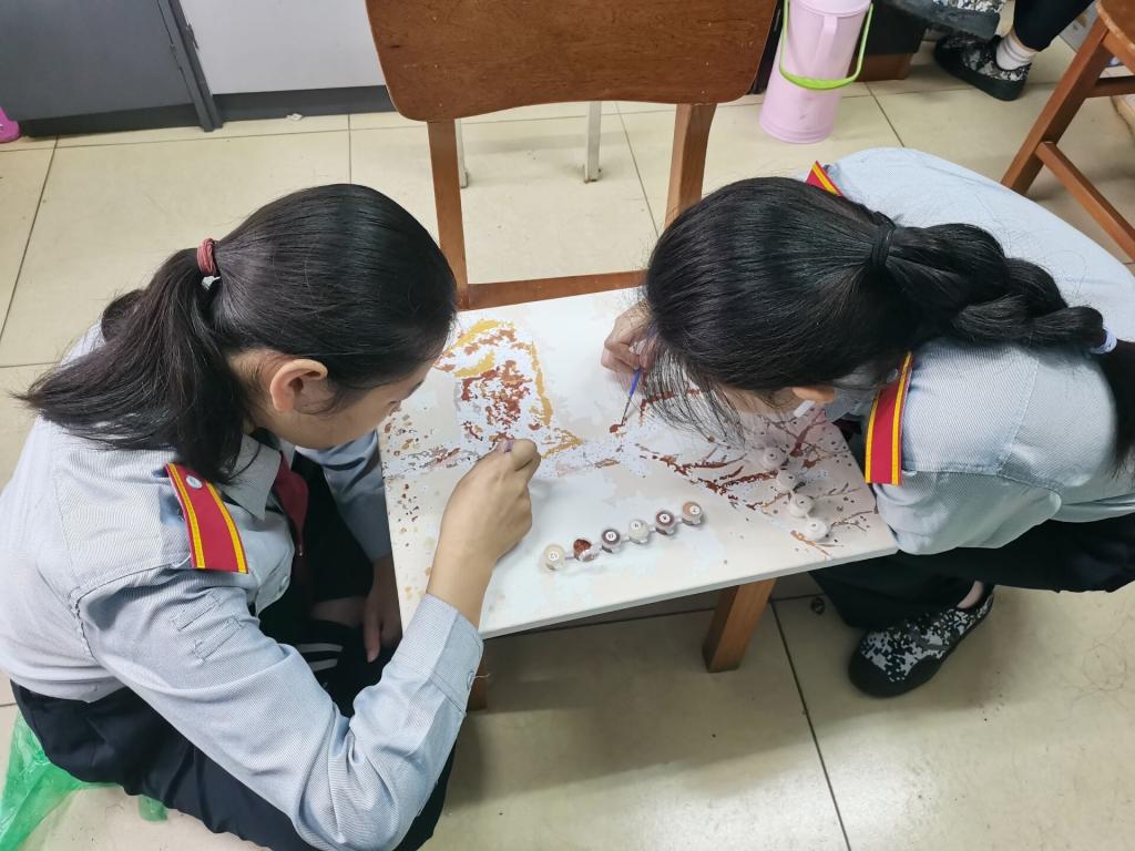 自动化12003班的张子恒在“画心画语”一栏里写到:我作为一名理工科学生,接触绘画的机会并不多,最开始我一笔一笔往下画,生怕出现差池,但与同学们最终合作完成作品时,我感受到在学习生活上也应该如此,要勇于实践,要与同学们同行同力。