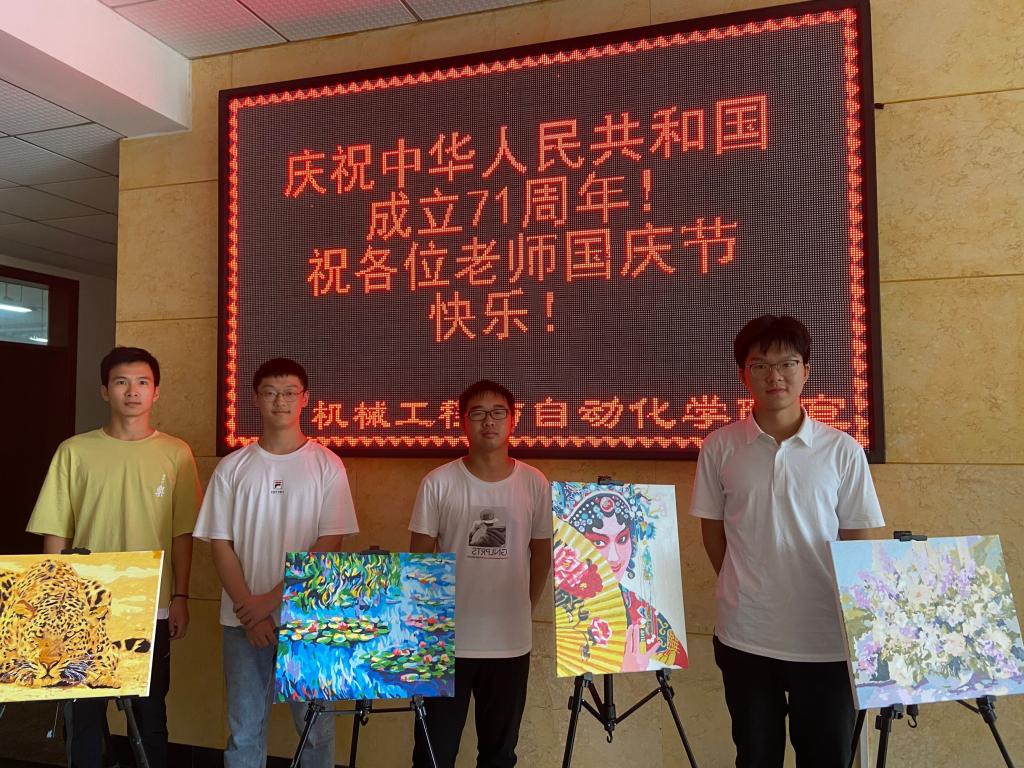 这十一幅绘画的初稿由学院提前准备,并作为新生礼物在第一次班会时授予大家。在这一个月期间,同学们在寝室里互相合作进行补充填色,以手中的笔、心中的情,使原本“平淡”的初稿慢慢变得独一无二。参与绘画的同学们在这次活动中互相交流,互相学习,将理性与感性结合,使机械与艺术碰撞出了惊艳的效果。