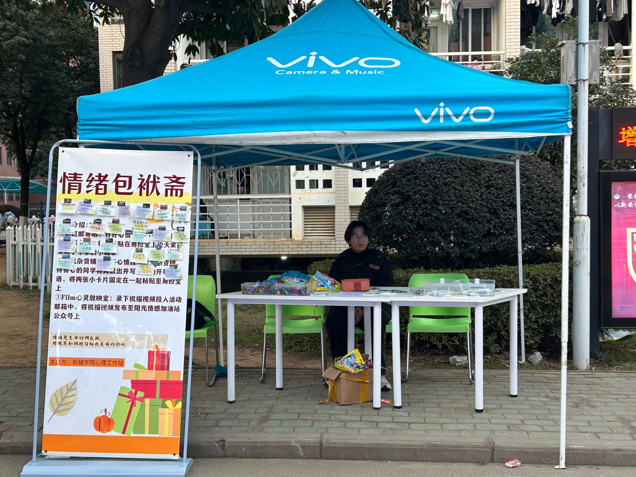 为让同学们进行情绪交流,甩开不良情绪,开心拥抱美好的大学生活,培养大学生乐观向上、努力奋斗的良好心理品质,促进人格健全发展,williamhill英国中文心理工作站于3月9日在一食堂门口开展情绪包袱斋的摆点活动。
