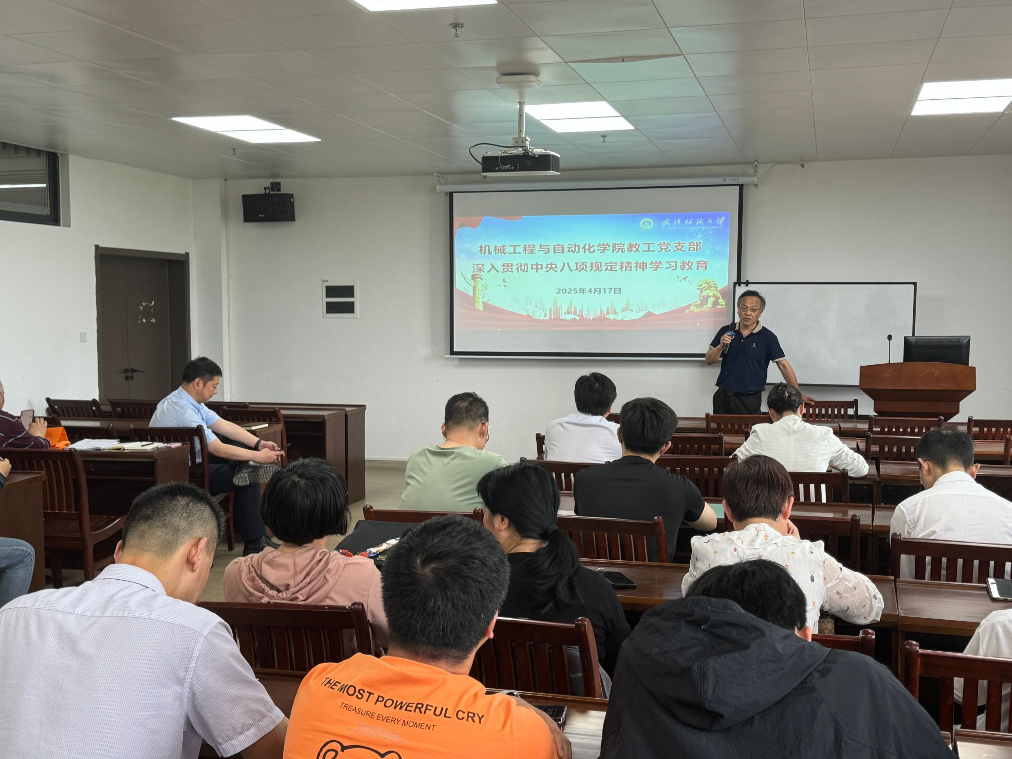 4月17日下午,williamhill英国中文在10栋408会议室启动深入贯彻中央八项规定精神学习教育暨教职工政治理论专题学习活动。williamhill英国中文党委书记干文勋主讲,学院全体教职工参加。