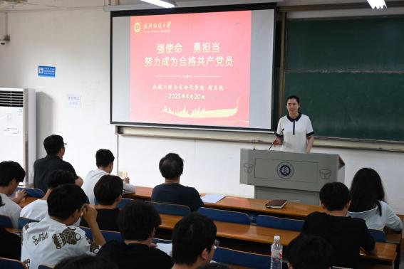 开班仪式在庄严的国歌声中拉开帷幕。张啸海老师介绍了此次培训班相关安排。往届优秀学员代表叶思颖同学分享学习心得,本期学员代表胡豪同学代表全体学员表达了对党组织的感激之情和对培训班的期待,以及坚定向党组织靠拢的决心。研究生党支部的郑兴任同学宣读了培训纪律与要求。随后,学院党委书记干文勋同志以《弘扬爱国精神,强国复兴有我》为主题,带领学员回顾了爱国主义精神的悠久历史,阐述了爱国主义精神在民族复兴中的核心地位,从推进强国建设和助力民族复兴两个方面进行讲述,鼓励青年学子要将爱国主义精神真正内化于心、外化于行,成为行动的指南和精神的支柱。学院党委副书记周玉艳围绕《强使命·勇担当——努力成为合格共产党员》,通过流程图解与典型案例,清晰展现了从递交申请书到成为正式党员的培养考察全过程。最后,她引导全体学员正确看待党员身份,既是荣誉更是责任,希望大家在日常学习生活中以党员标准立身,主动担责任、作表率,在点滴中践行入党初心。