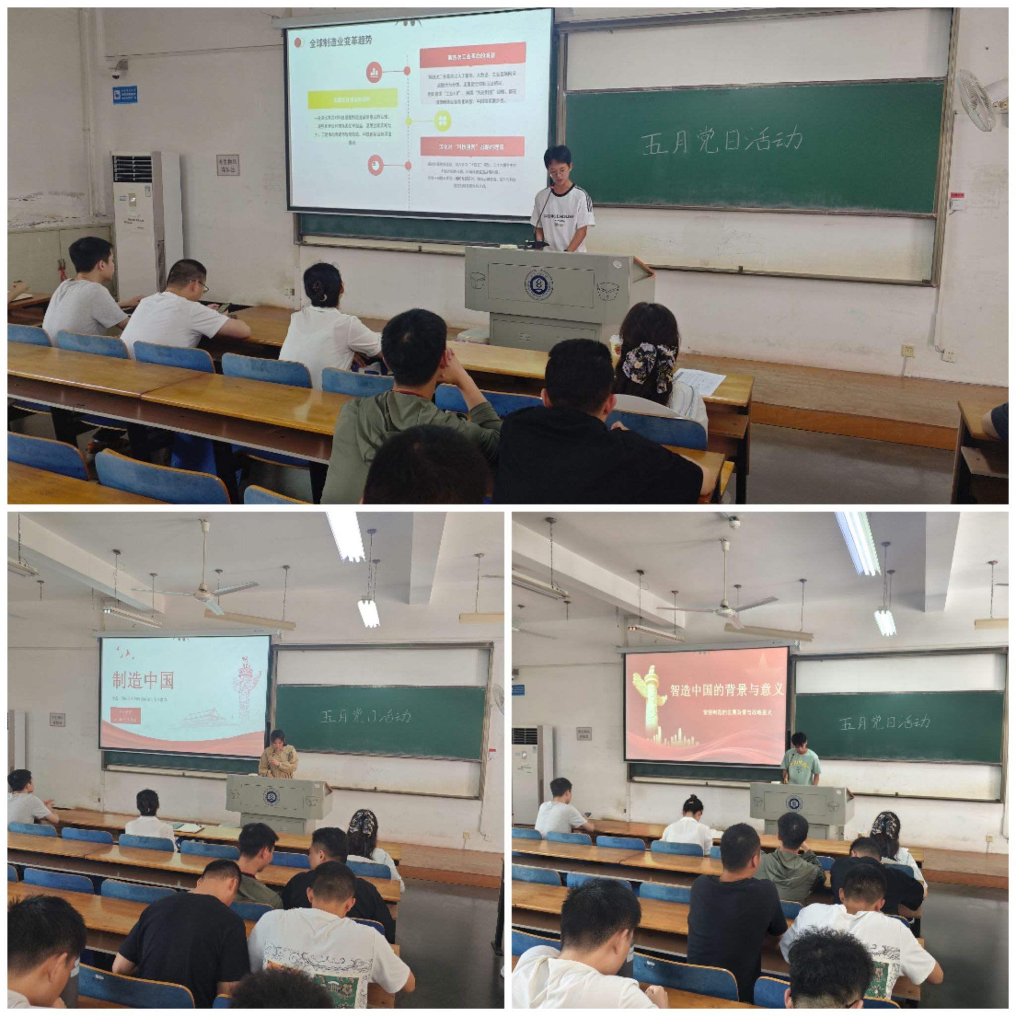活动开始,张庆乐同学以“科技创新引领制造业变革”为主题,结合目前制造业科技创新的具体示例,分析我国制造业发展的实践路径,立足学生党员发挥带头作用,呼吁大家为实现智造中国而不懈奋斗。周坤宇同学围绕“引领未来工业变革—智能制造时代的机遇与挑战”主题,分析了目前我国制造业的现状以及发展趋势,分享了关于智能制造领域的核心技术,并结合国内智能制造的成功典范,深入剖析目前智造中国与国际水平的差距与面临的问题。李佳颖同学以“智造中国—探索中国制造业的辉煌成就与未来潜力”为主题,从我国制造业的发展历程入手,分析了目前我国制造业面对的机遇与挑战,深入分析了未来制造业的可能发展趋势,为大家提供了更为广泛的思路。