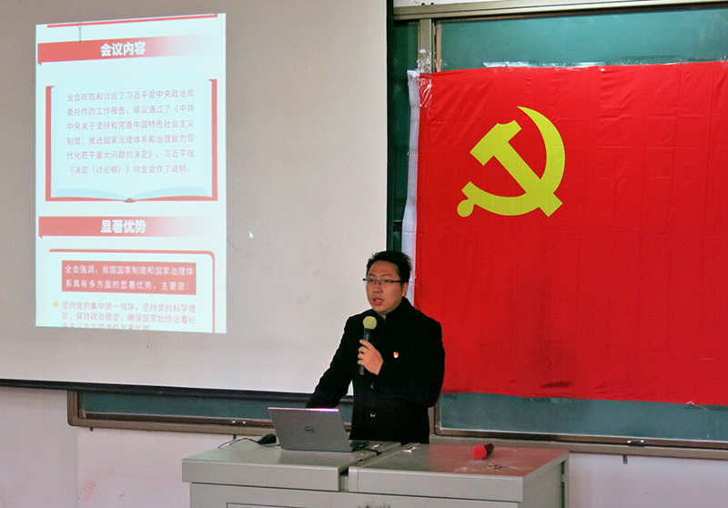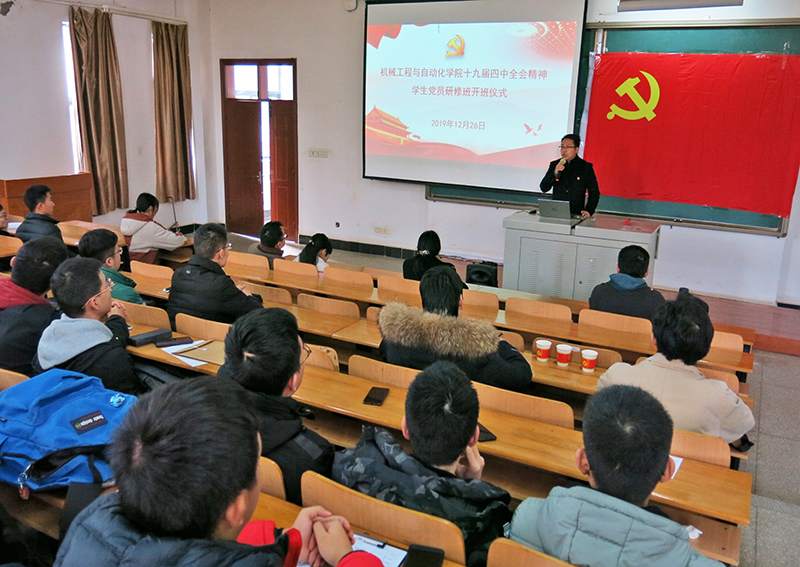 中国共产党第十九届中央委员会第四次全体会议(简称:中共十九届四中全会)于2019年10月28日至31日在北京召开,习近平总书记作重要讲话。12月26日,williamhill英国中文党委筹划成立党的十九届四中全会精神学生党员研修班,由学院党委书记肖信华、副书记刘韦组织开展学习。