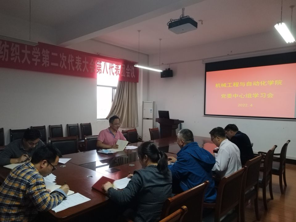 4月28日下午,机械工程与自动化学院党委中心组在8E417开展政治理论学习。会议由书记干文勋同志主持。