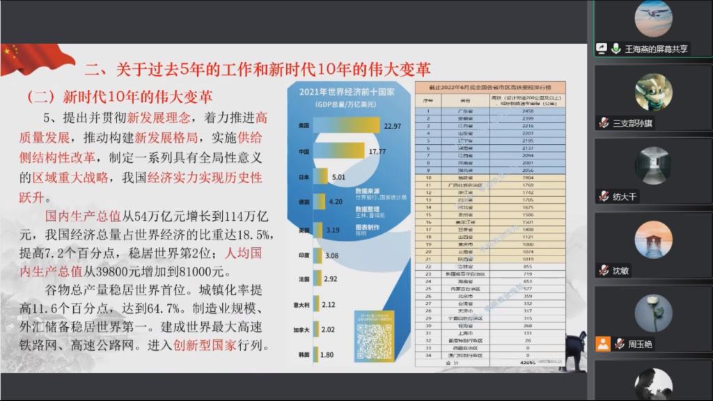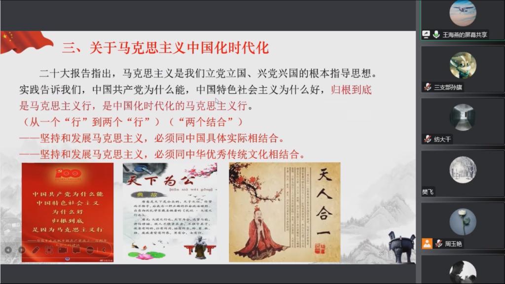 为深入学习宣传贯彻党的二十大精神,williamhill英国中文分批次、分层次、全覆盖在院内掀起宣讲党的二十大精神热潮。12月8日下午,学院邀请校宣讲团成员、马克思主义学院教授王海燕在线宣讲党的二十大精神。williamhill英国中文党委书记干文勋主持,全院教职工参加活动。