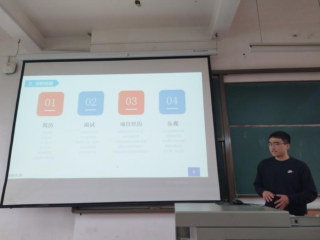 分享会上,优秀考博代表刘康分享了他申请华中科技大学博士研究生的经历,为21级预备申请博士研究生的同学提供了宝贵的经验。董玉婕、张勇、孙伟波、张旭泽、熊涛等5名优秀的就业代表依次分享了他们获取心仪公司offer的经验,从公司的选择、简历的写作及投递、笔试和面试的经验以及在校期间需做的准备等方面进行了详尽分享,21级研究生提供了宝贵的经验和方法。