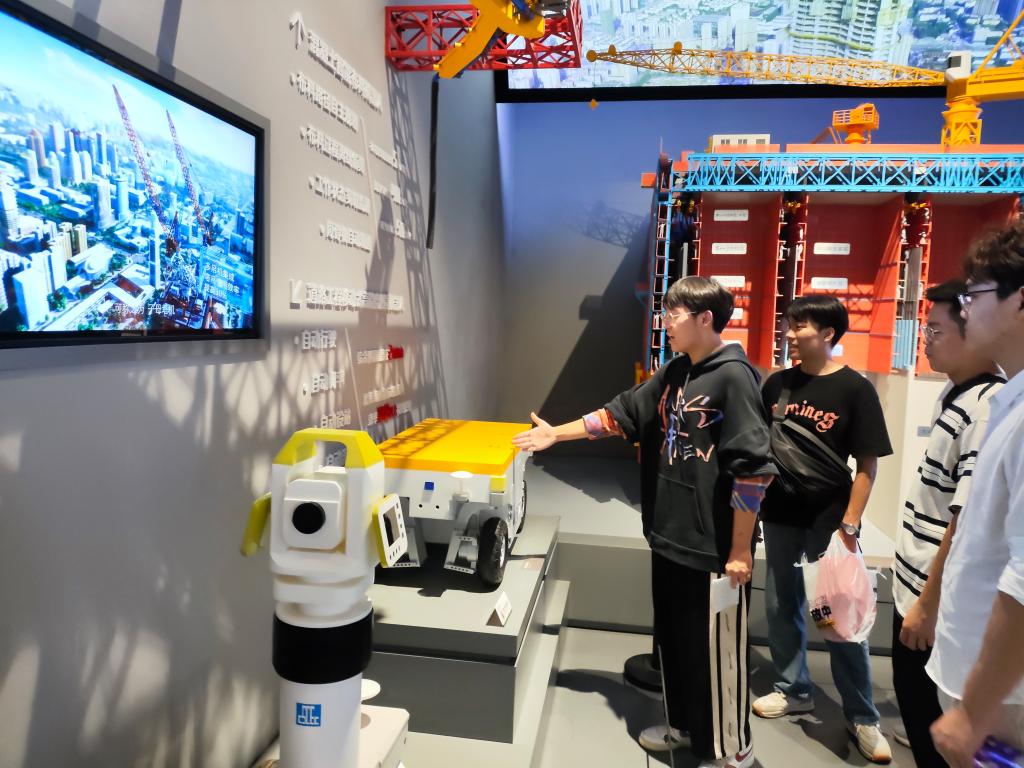 “这是按比例还原了古建筑模型,梁思成、林徽因在中国营造学社时期发现、测量、保护的古建筑图稿就在我们眼前,格外独特且珍贵;这是中国建筑自主研发的工地物流小车,极大地解决了施工现场小物件人力搬运资源不足的问题……”第四支部徐子豪带领大家先后参观了现代建筑展厅、古代建筑展厅、荆楚建筑展厅、未来建筑展厅,共同学习了中国历代建筑文化,了解了中国建筑发展历程、先进技术和伟大成就,大家无不感慨着建筑艺术的精巧和智慧。