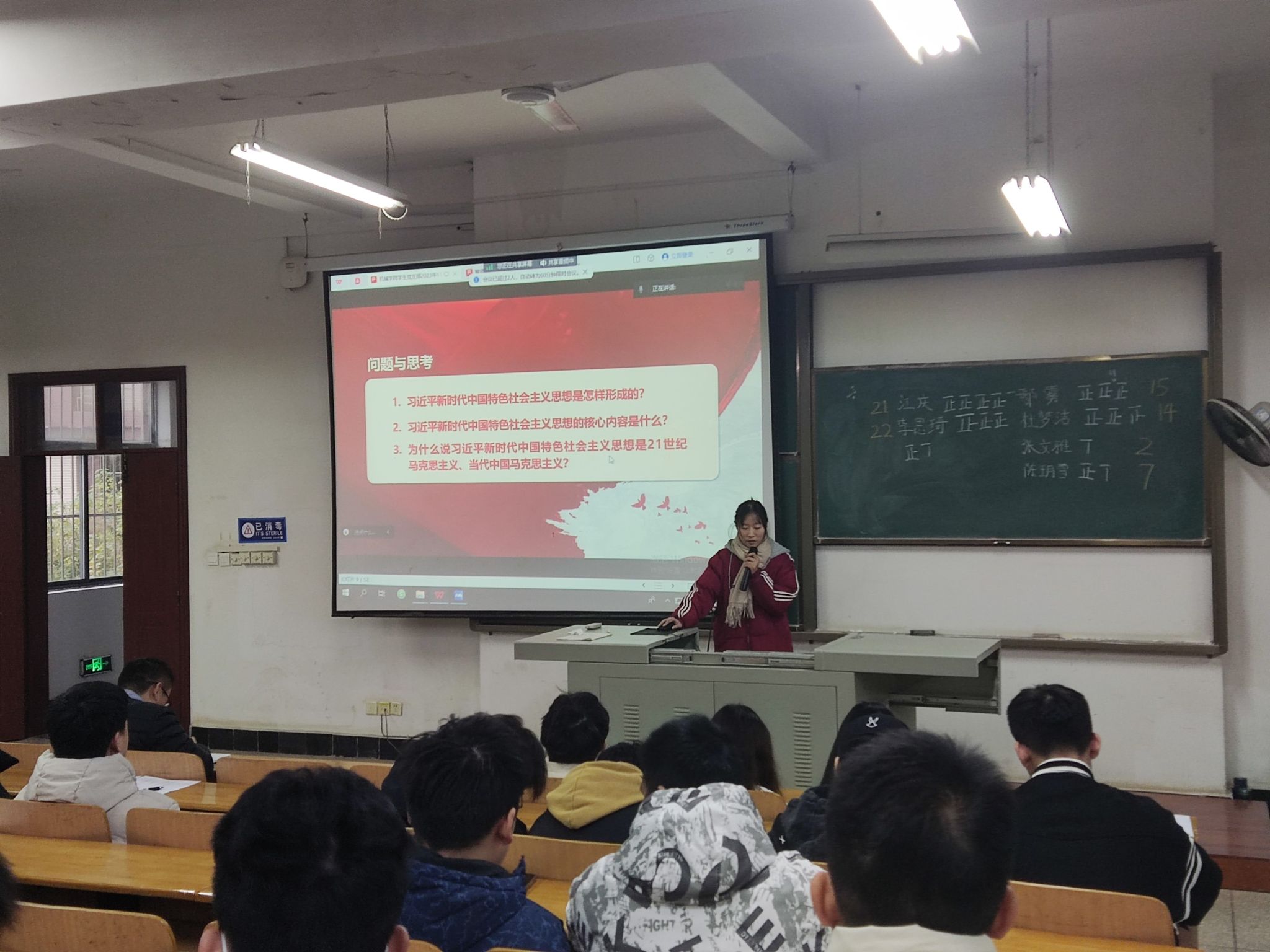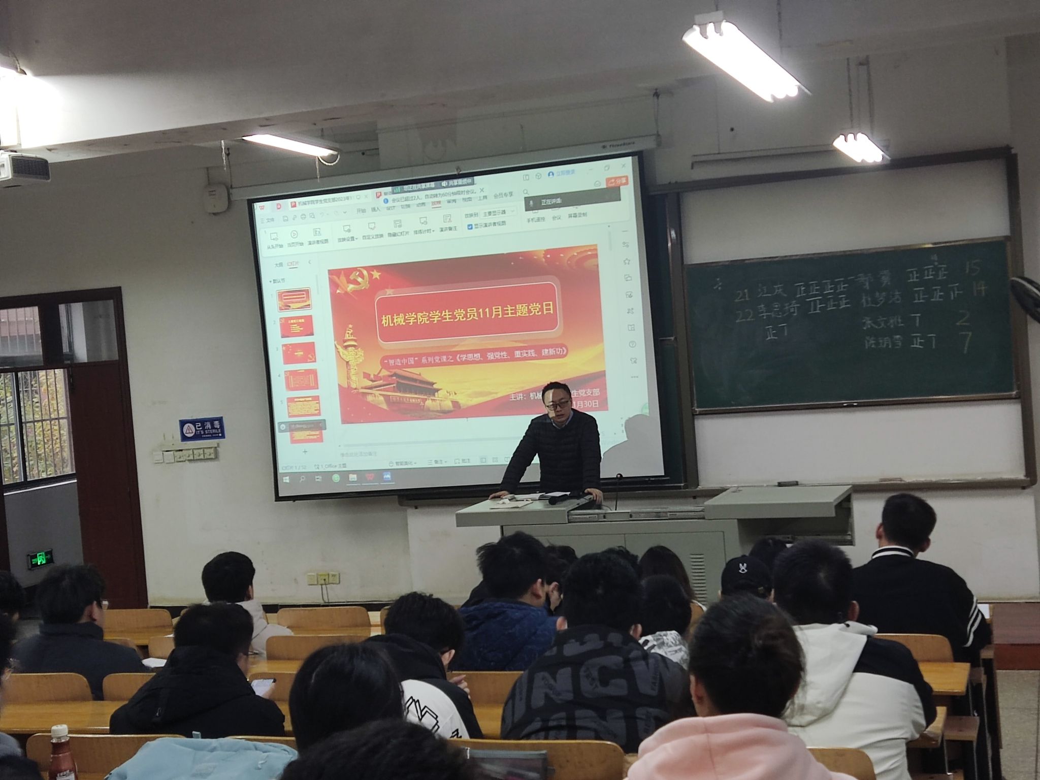 11月30日下午3:40,williamhill英国中文学生各党支部在8D101教室开展学生党11月主题党日活动。会议以“学思想、强党性、重实践、建新功”为主题,由学生党员张慧茹主持。