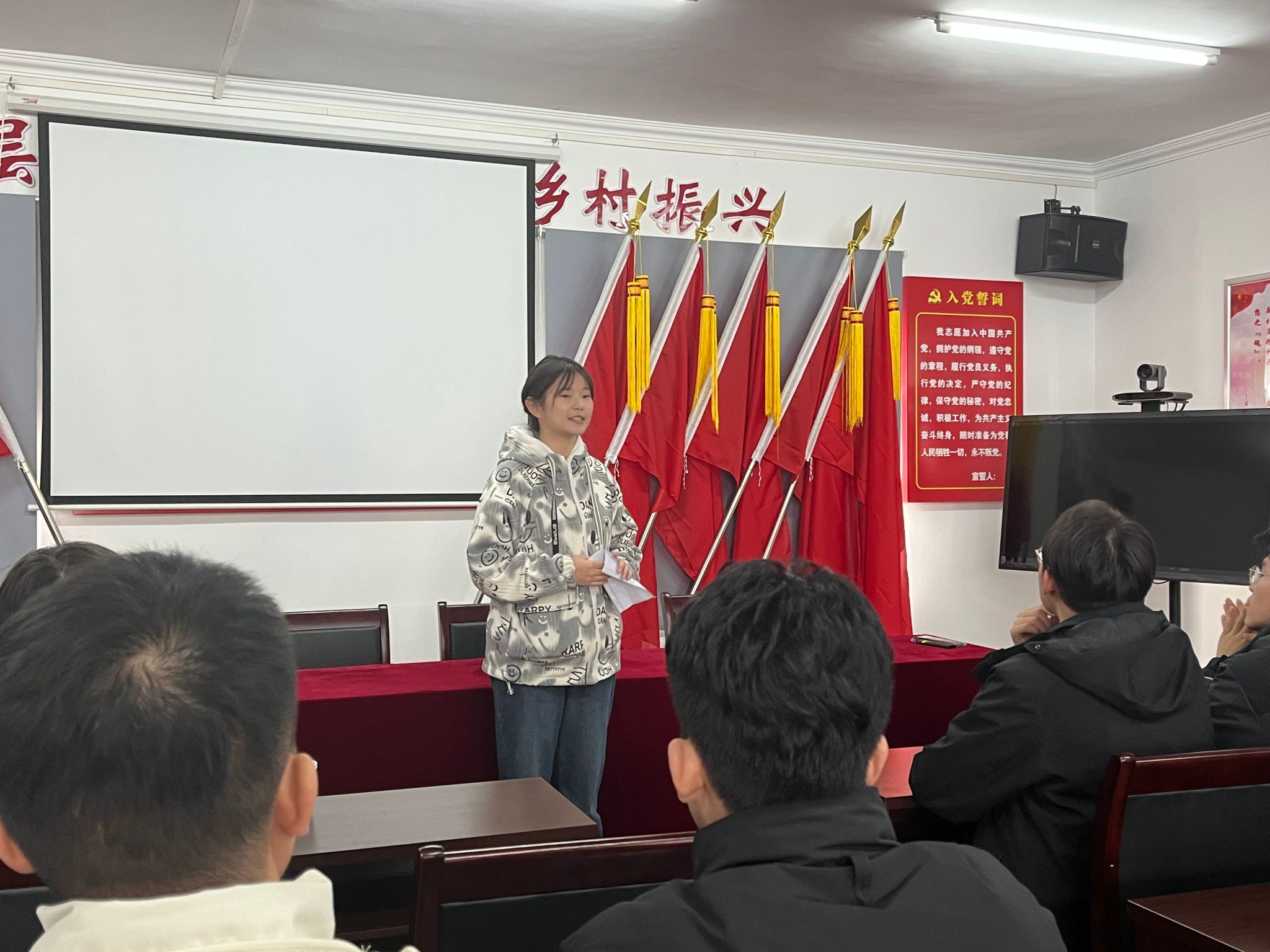 杨智远同志首先为大家介绍了洪湖的地理位置和红色历史故事,从洪湖市瞿家湾革命根据地的建设出发,带领大家以红色的眼光重新领略了瞿家湾的特殊意义,并号召各学生党员学习贺龙等老一辈革命家百折不挠,牢记使命的伟大革命精神,青春是朝气蓬勃的时代也是锐意创新进取的时代,在美好的青春要敢闯敢试,创造令人刮目相看的青春奇迹!