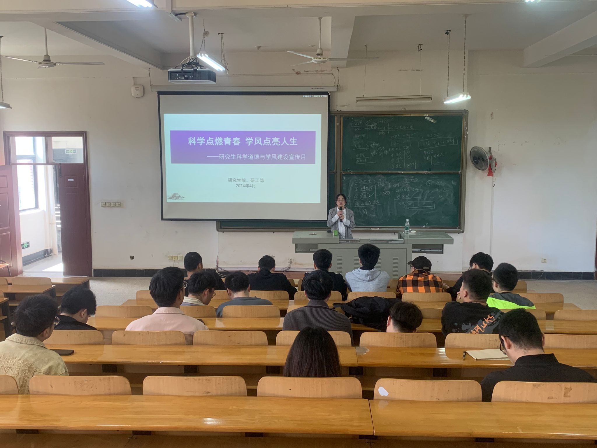 宋志峰老师、杜利珍老师、高飘老师、熊小双老师等强调了学术道德与学术规范的重要意义和价值,通过加强科学道德与学风建设的必要性、科研十大不端行为、研究生应遵循的十大学术规范、十大科学精神与素养等四个方面进行了讲解,要牢固树立“红线意识”和“底线思维”,自觉抵制论文抄袭等学术不端行为,培养高尚的学术品格,潜心开展创新实践研究。