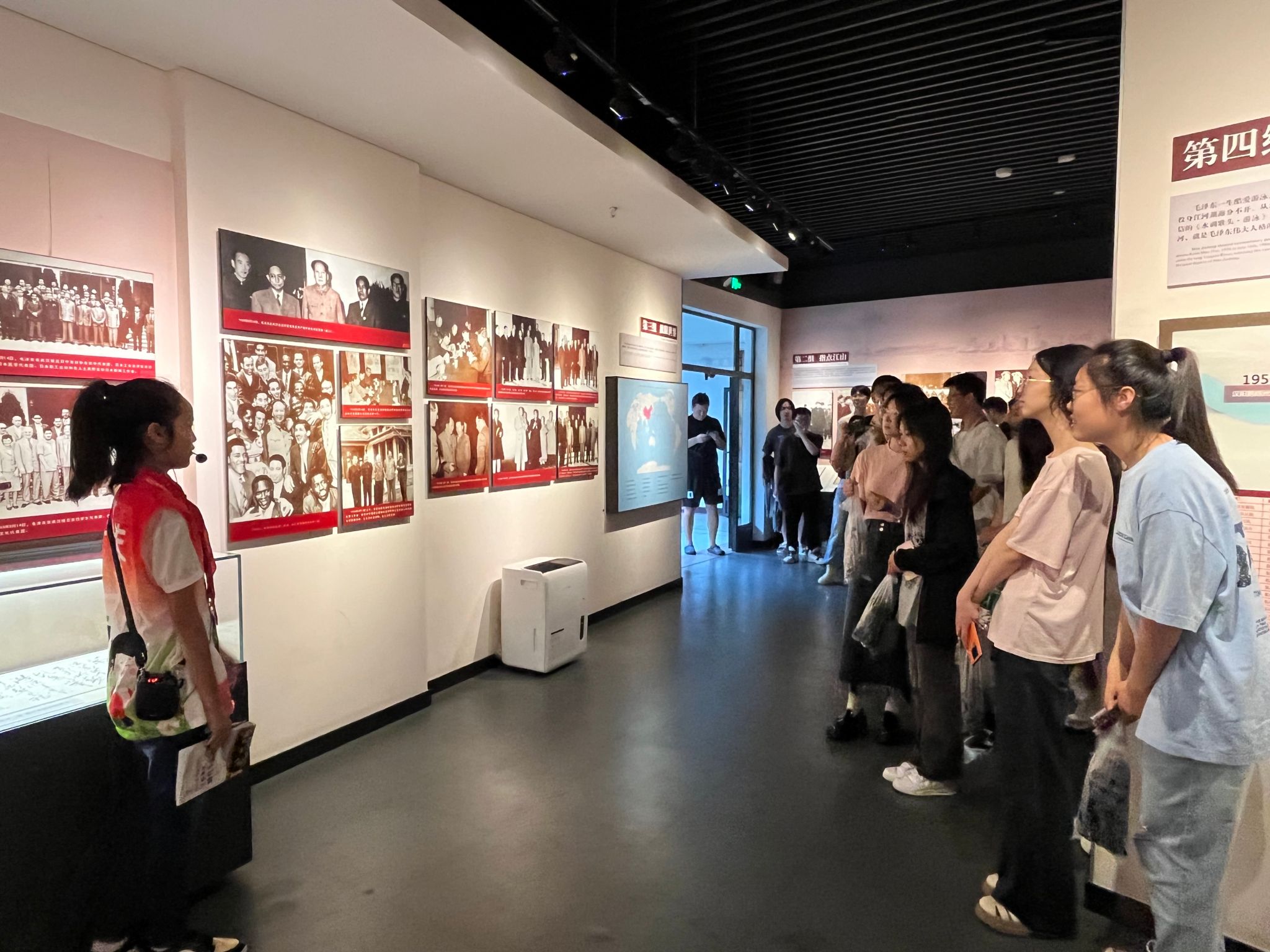 参观伊始,学生党员面向党旗,举起右拳,重温入党誓词。随后大家依次参观了中共五大会址、毛泽东旧居纪念馆、中国共产党纪律建设历史陈列馆。李天阳同学为大家详细介绍了五大会址的历史背景、重要意义以及在党的发展历程中所起到的关键作用。她的讲解生动而细致,再现当年那场具有重大意义的会议场景,让大家对党的历史节点有了更加清晰而深刻的认识;在毛泽东旧居纪念馆,王烨同学为大家绘声绘色的讲述了毛泽东同志在此处生活的点点滴滴,从简朴的居住环境到日常的工作细节,每一个故事都展现了伟人艰苦朴素的生活作风和为人民谋幸福的坚定信念。在中国共产党纪律建设陈列馆,苏荣亮同学以清晰的思路和丰富的案例,为大家深入剖析了中国共产党在纪律建设方面的不懈探索和伟大成就。他通过一个个生动的故事和详实的数据,展现了党在不同历史时期如何通过严格的纪律要求,保持党的先进性和纯洁性,不断推动党和国家事业向前发展。