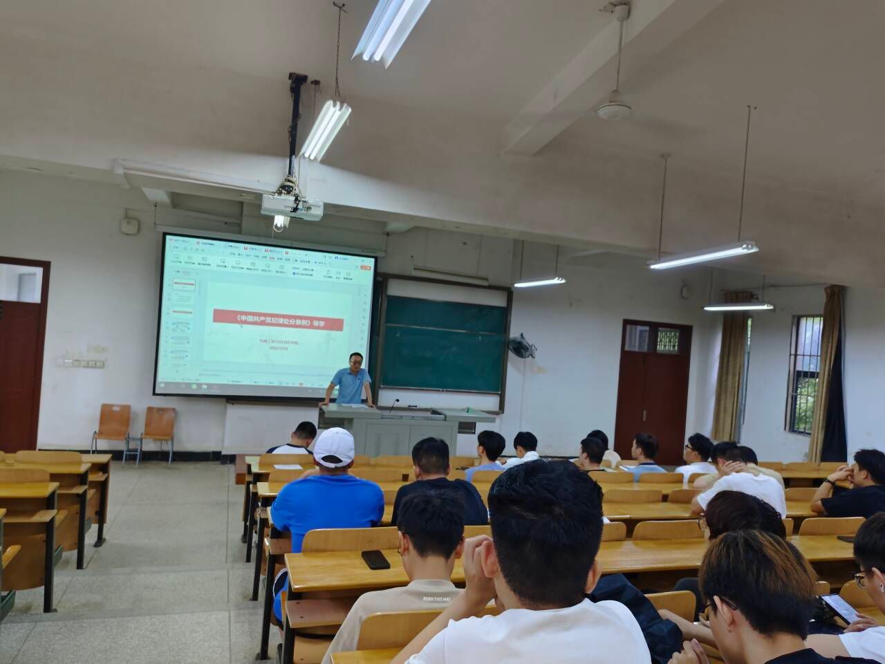 谢超老师组织大家集体学习《中国共产党纪律处分条例》内容,强调“学纪、知纪、明纪、守纪”,把党的纪律内化为思想觉悟和行为自觉,充分发挥党支部战斗堡垒作用和党员的先锋模范作用,以青春之我书写中国式现代化青春篇章。