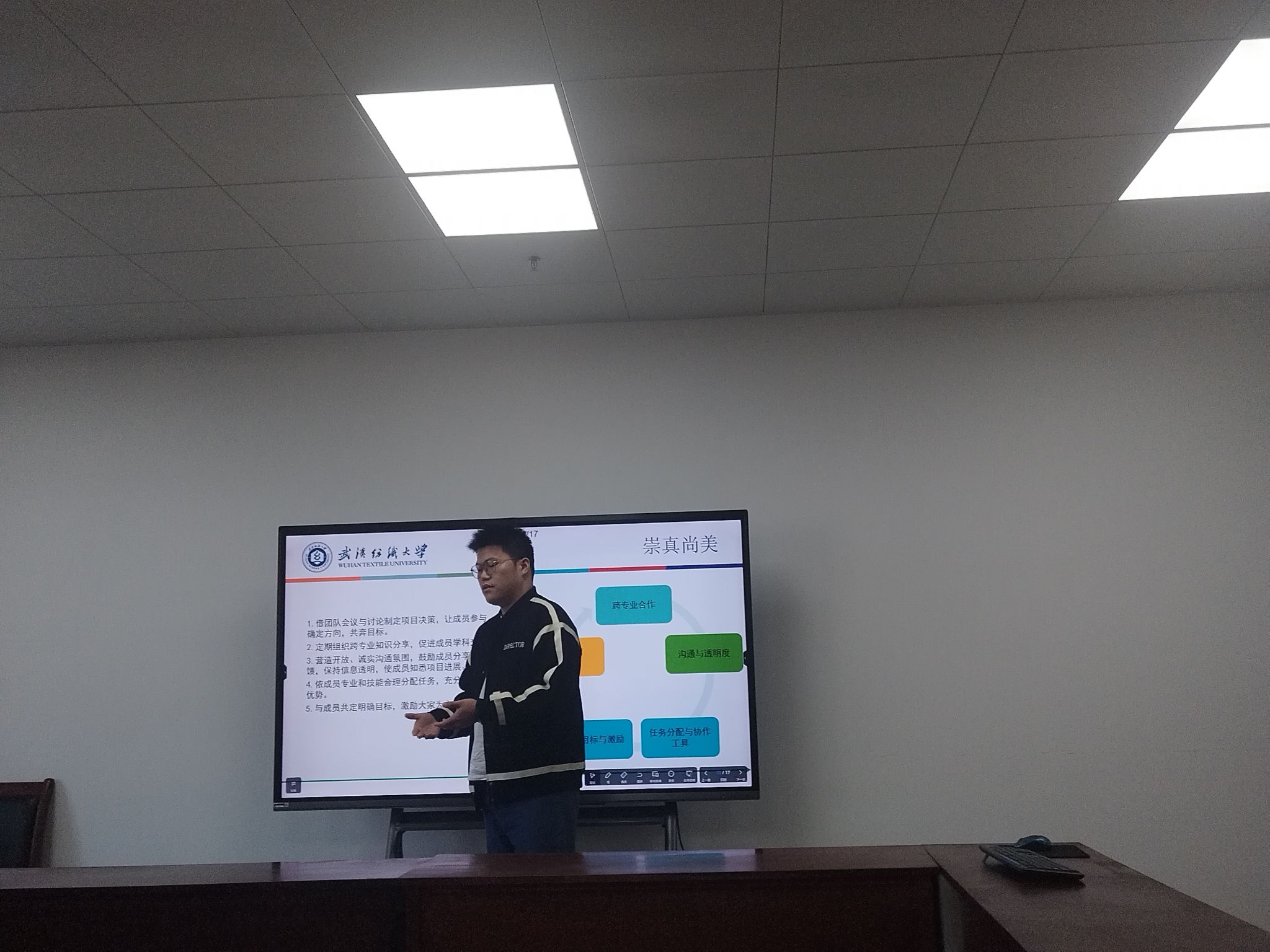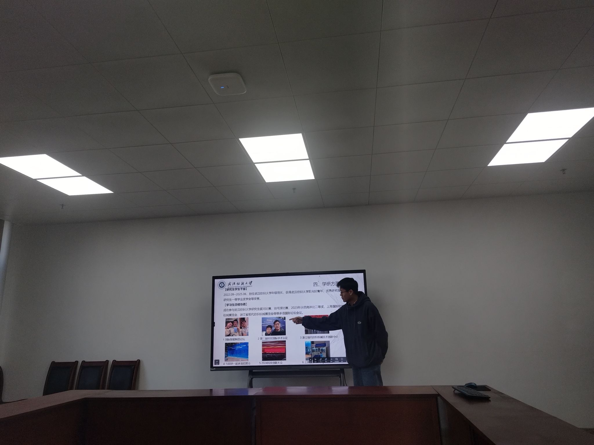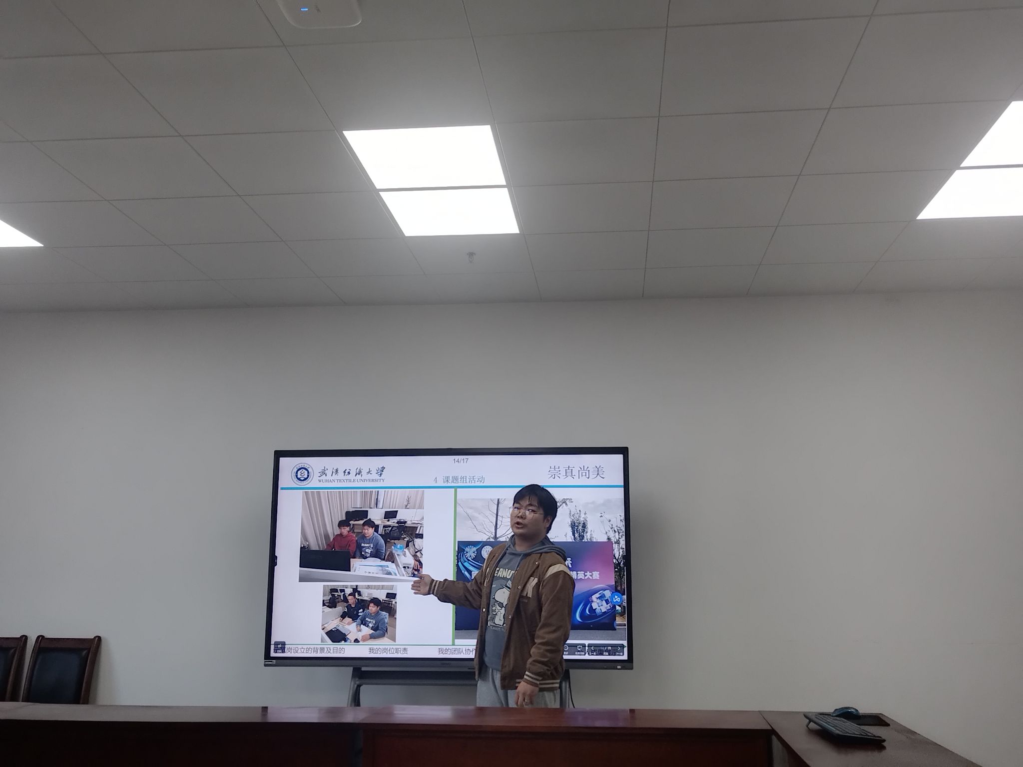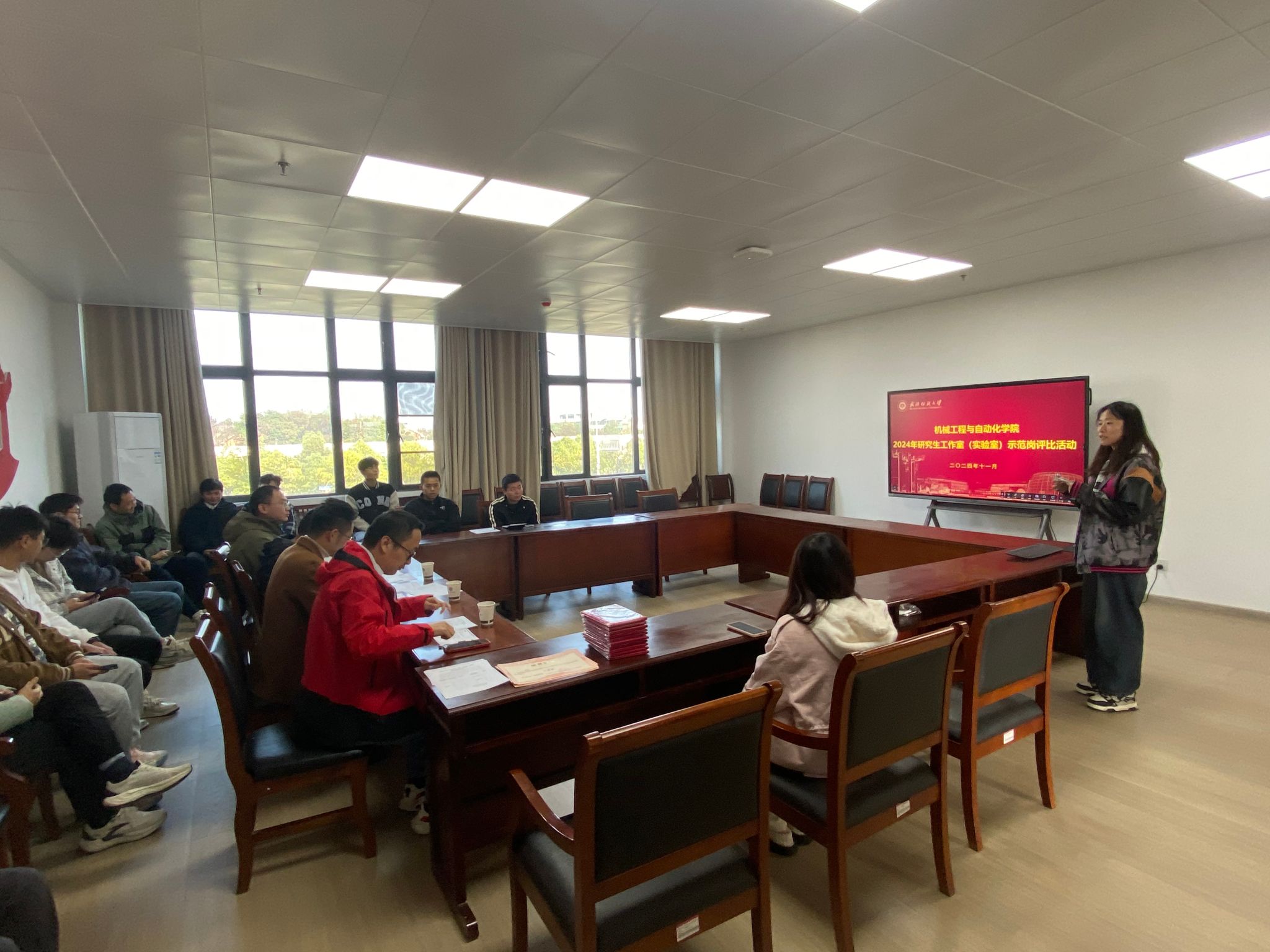 为促进研究生全面发展,提升研究生培养质量,做好导学思政工作,充分发挥研究生工作室(实验室)的示范引领作用,积极创建安全文明、科学进步的研究生工作室(实验室),以奋斗之笔和青春之行投身到美好纺大和中国梦的建设中,学院于11月21日开展了研究生工作室(实验室)示范岗评选活动,德育导师熊小双老师、德育导师徐楚桥老师、教秘欧阳智勇老师和研究生辅导员谢超老师当任此次活动的评委。
