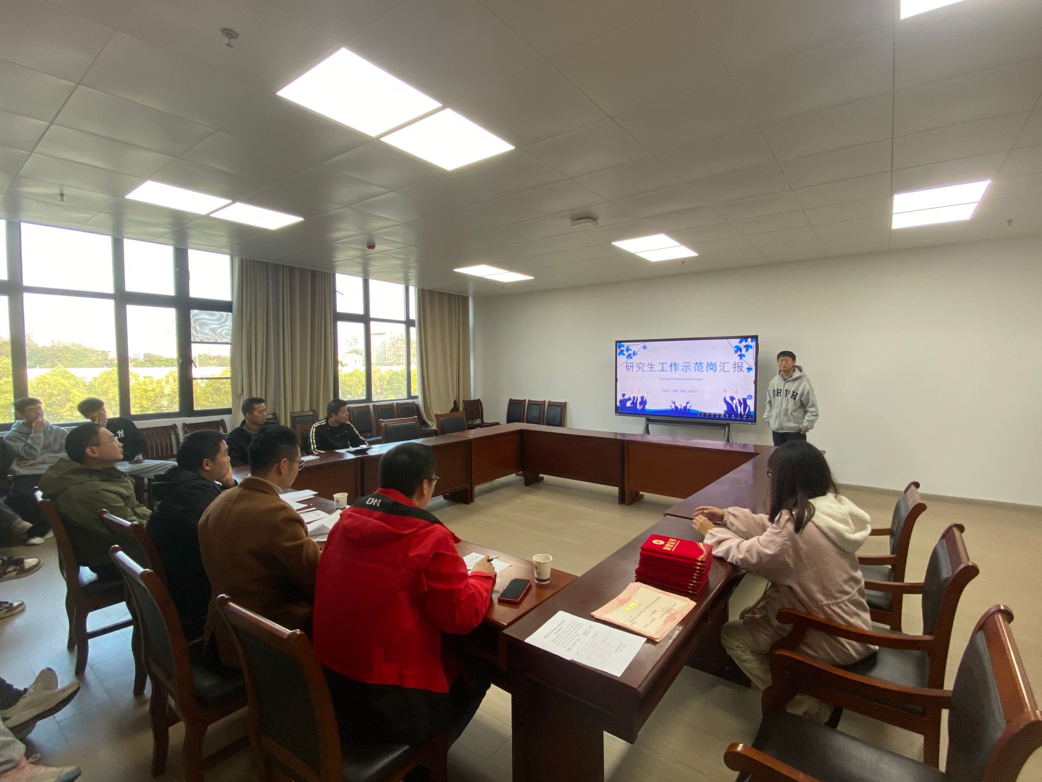 本次评比活动由学院研究生党支部组织年级学生干部来进行统筹落实,通过实地检查和随机调查同学,共有10位学生入围了最后的评比活动,大家通过ppt讲演、团队学生代表评价等来进行综合展示,经过精彩的评比,李耀钢和徐彬荣获一等奖。德育导师熊小双老师对此次评比活动给予了赞赏,体现了工作室(实验室)示范岗的效果,在团队中思想、安全、学研、文化等方面发挥了实际作用,希望大家努力提升了自我的综合素质,在工作室(实验室)发挥示范引领和模范带头作用,打造优秀团队,彰显示范岗学生在团队中的实际作用。