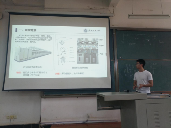 本次研究生论坛报告人的课题分别是《超宽超厚三维平板织物织机》、《基于机器视觉的自动穿经机关键技术研究》、《喷气织机引纬系统流场分析与噪声抑制》、《基于磁悬浮圆周引纬的天线罩预制体织机关键技术研究》、《基于FPGA的磁悬浮织针控制系统》、《宽幅悬浮式片梭引纬双向电磁驱动研究与实验》和《直捻机智能上下纱装置设计与运动规划研究》。